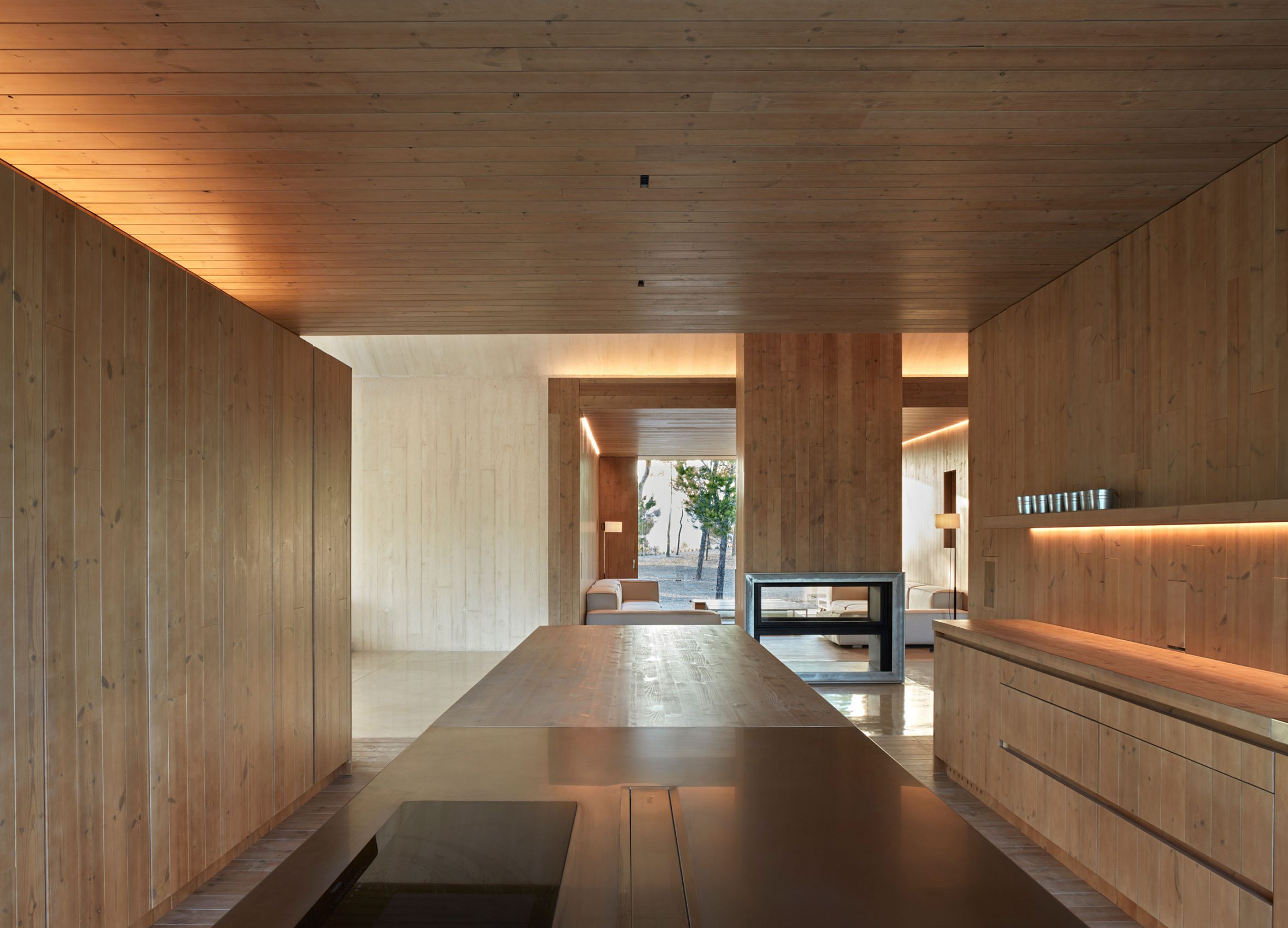 The views from the inside are framed by pine wood surfaces