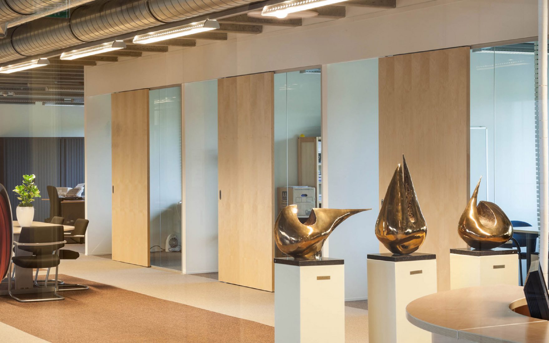 Les espaces de travail ont été aménagés sans fioritures afin que davantage de ressources puissent être canalisées vers un seul et impressionnant service partagé qui rehausse le prestige de l'ensemble du bâtiment.