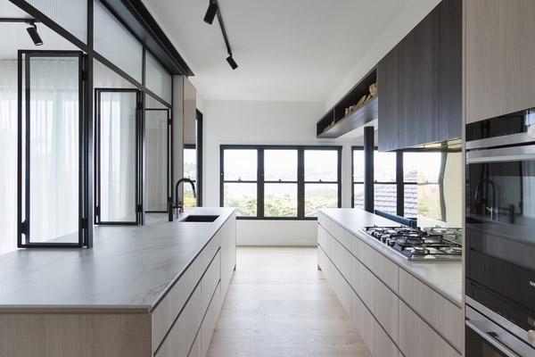 La casa, spesso ospite di incontri culturali, presenta l'illuminazione a binario disposta simmetricamente negli spazi principali, superfici in ottone, pareti divisorie vetrate con cornice in acciaio. In questo modo lo spazio appare semi-pubblico. Alla composizione rigida si contrappongono opere d'arte e mobili eclettici, distribuiti per tutta l'abitazione