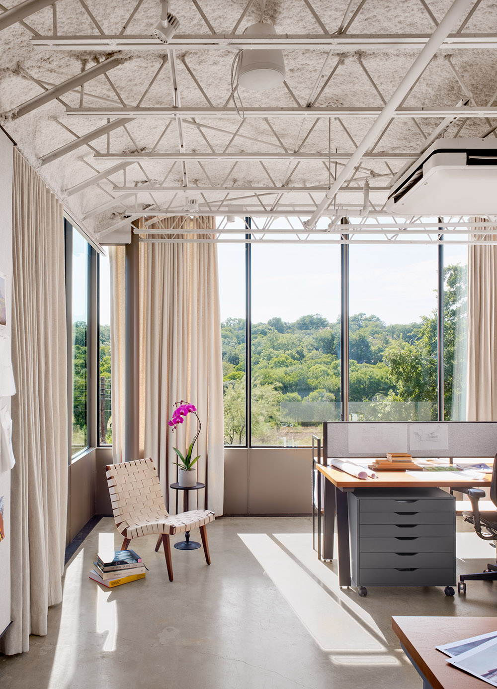 Situé sur North Lamar Boulevard, Design Office incarne l'approche interdisciplinaire de Clayton Korte, favorisant le dialogue entre l'architecture et le paysage. Partagé avec Word + Carr Design Group, le studio propose non seulement des espaces de travail, mais aussi un forum pour le design, accueillant des expositions d'art et des rencontres entre professionnels. Cette intervention montre comment les projets de rénovation peuvent transformer des bâtiments existants, en valorisant leur potentiel à travers des stratégies d'ouverture, de connexion visuelle et de fonctionnalité contemporaine.