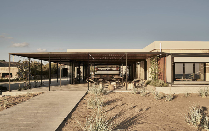 Les principaux matériaux sont le béton, l'acier, le verre et le bois pour évoquer une connexion nautique du site à la mer. Mais la nouvelle construction a également laissé les bâtiments relativement intacts pour maintenir leur forte présence. La conception clé de l'hôtel contraste et équilibre habilement l'ancien et le nouveau en utilisant une palette industrielle de manière élégante.