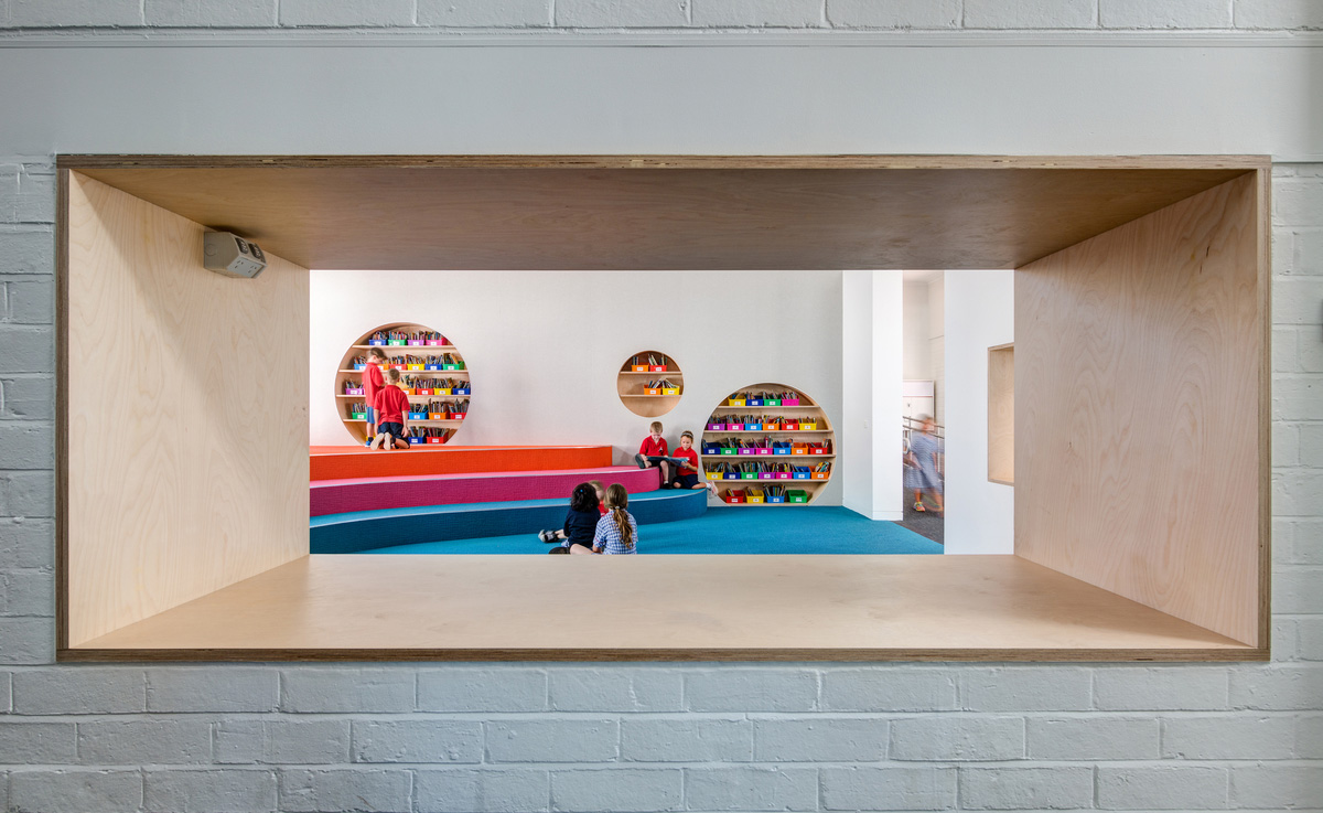 École primaire innovante à Melbourne. Rénovation d'un bâtiment Art Déco.