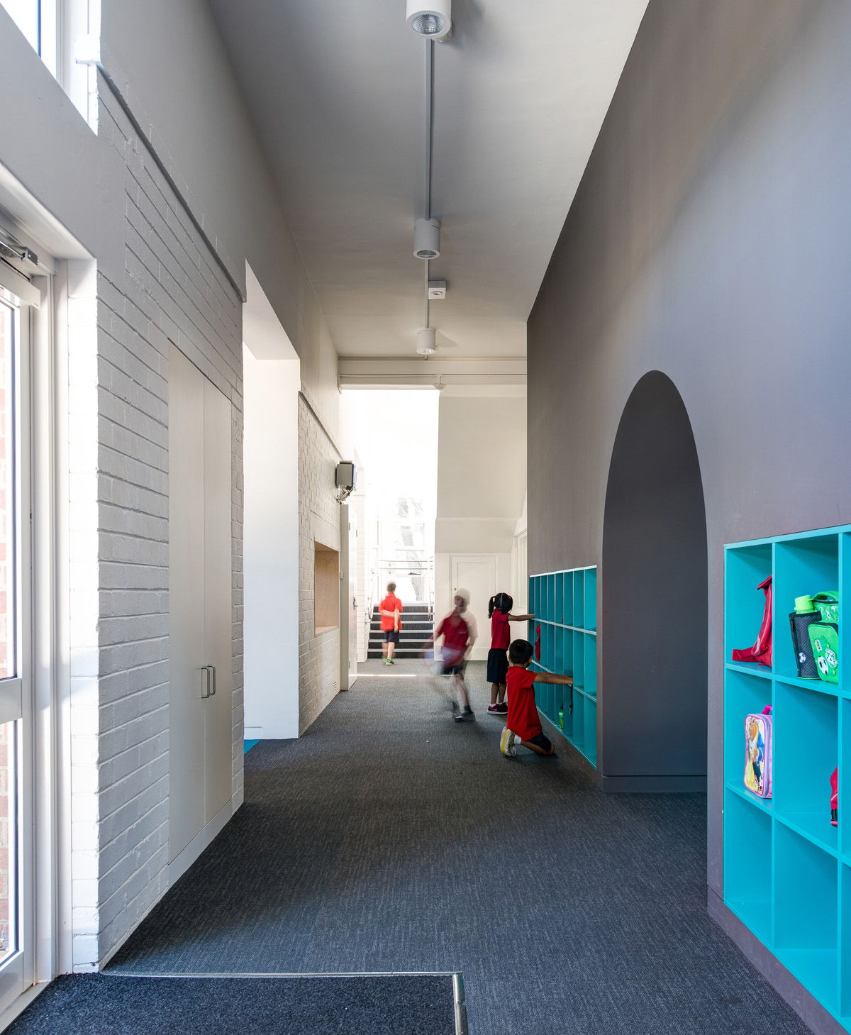 Les salles de classe sont transformées en espaces lumineux pour l'apprentissage, avec une variété d'espaces : des espaces pour des activités libres, des espaces éducatifs, des espaces plus petits. La combinaison de ces espaces crée un bâtiment polyvalent, capable de s'adapter à une grande variété d'apprentissage et d'enseignement. Chaque espace peut être personnalisé avec des murs tableau noir et les arches parviennent à générer un sentiment d'appartenance à l'espace parmi les étudiants.