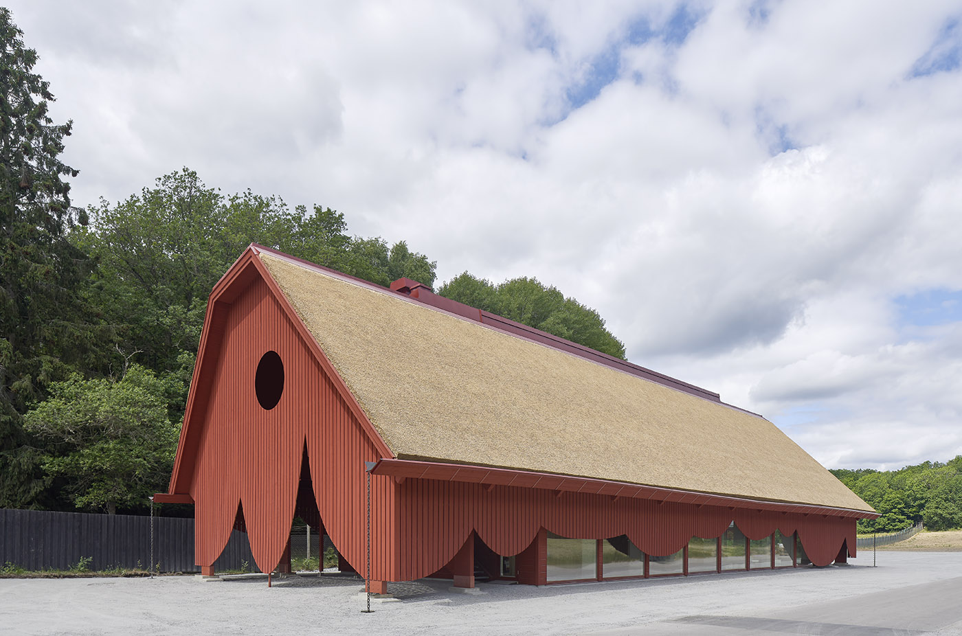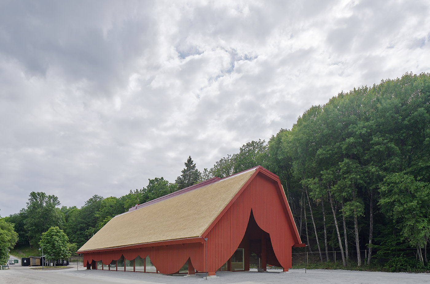 The vision of the Swedish architecture firm Sandellsandberg, which is in charge of the project, was to provide the nature reserve with modern buildings, but with an overall design reminiscent of the traditional architecture of the area. Inspired by historic houses and built in the Blekinge craft tradition, the entrance building made of wood is shaped like a barn, with large windows and a thatched roof