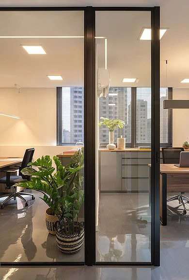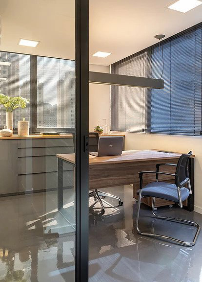 The Brazilian studio DT estudio renovates the interior of some working environments for a company, trying to integrate the rooms with each other through the use of glass and the use of a common floor for all rooms
