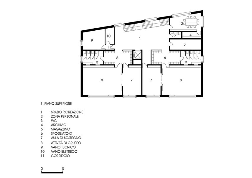Le studio Roland Baldi Architects remporte en 2011 le concours de projets d'architecture pour la nouvelle construction de l'école maternelle de Sluderno, commune située dans une vallée du Haut-Adige qui relie l'Italie, l'Autriche et la Suisse. Ici, le paysage extrêmement soigné et le développement durable, associés à une attention particulière à l'architecture, contribuent à la haute qualité de vie. Dans ce contexte, l'école, achevée en 2018, s'intègre avec son toit en forme de chalet et ses grandes fenêtres décalées, rappelant le dessin d'un enfant représentant la maison avec un effet convivial et familial