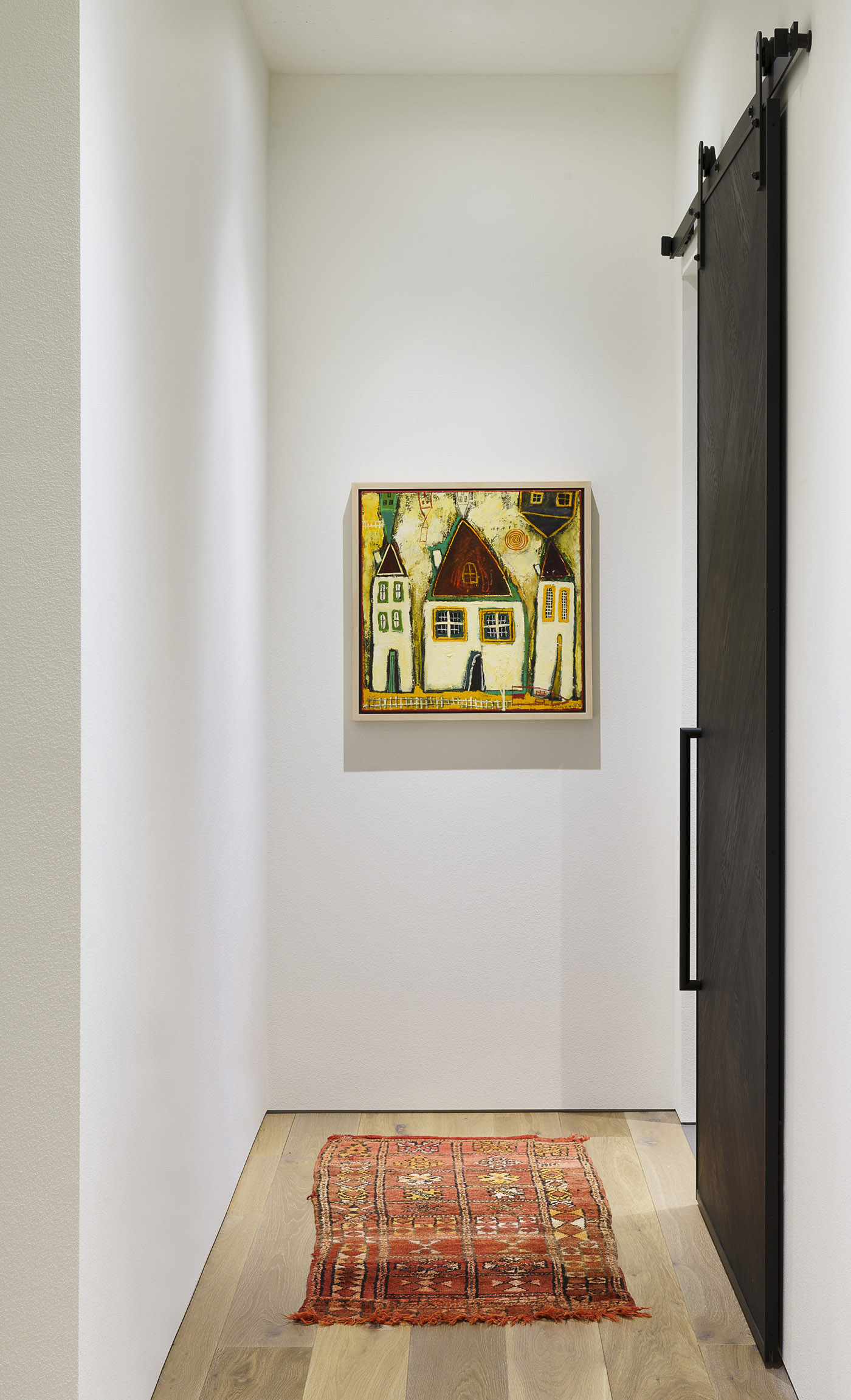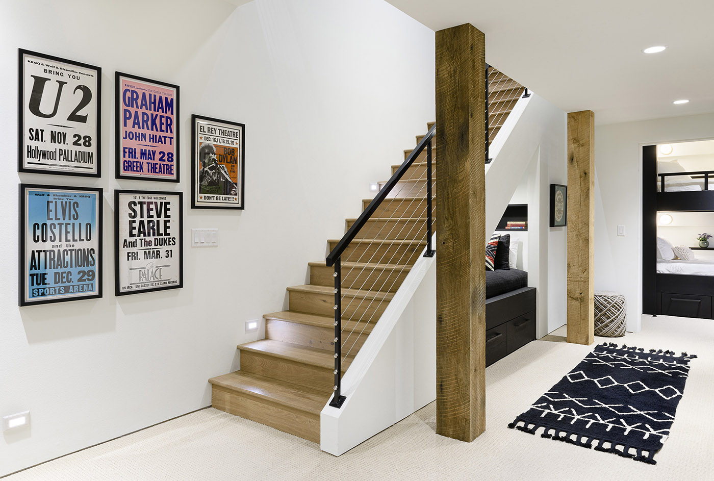 The house tells in its details the passions and habits of its inhabitants: a cinema room, a barbecue tucked in the back of the large fireplace, a home design that includes work spaces for the heads of the family; the pleasure of hosting is embodied in the future guest house being planned and in the guest room with bathroom already in the residence. The daughter's room, on the other hand, is a true private realm for her and her friends, with bunk beds and a sitting area with a corner window framing Trapper Peak. Finally, personal touches are found throughout the residence, testaments to the love of art and the space to be inhabited