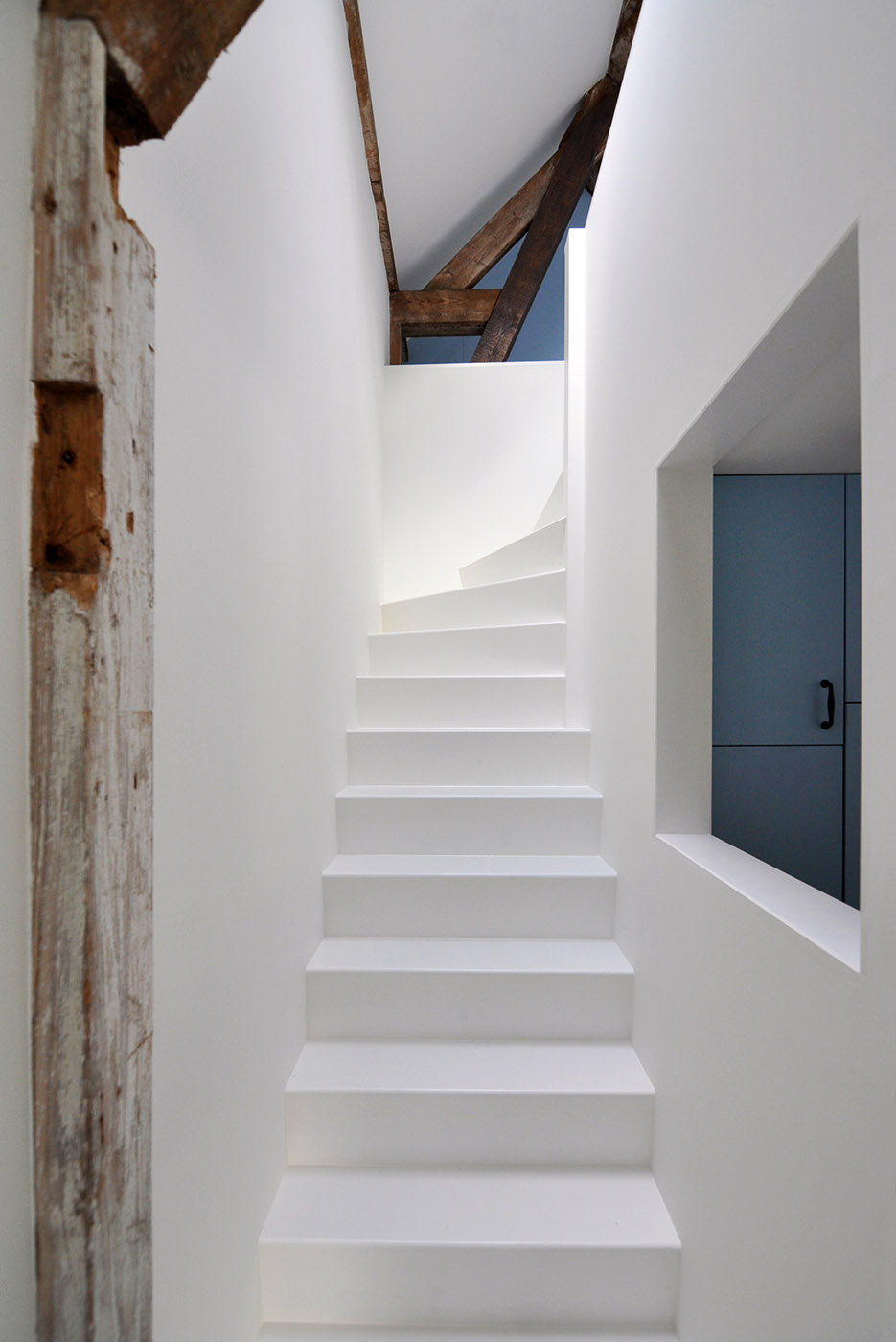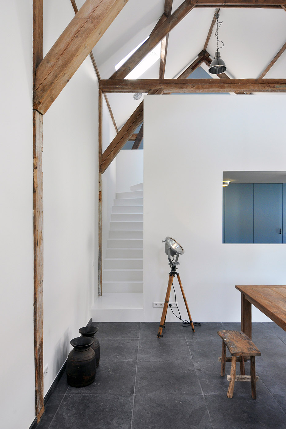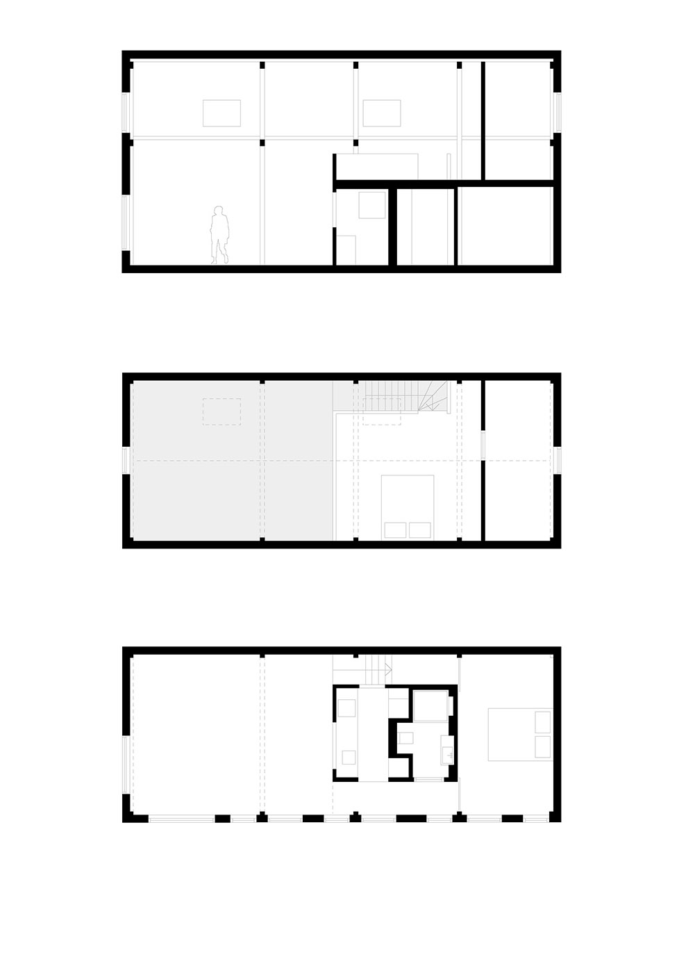 Le divisioni interne vengono demolite, permettendo di ripensare l'organizzazione interna. Le aperture della facciata originale vengono mantenute, e grazie a nuovi lucernari e porte in vetro, gli interni sono ben illuminati. Grazie a delle aperture interne, si creano nuove viste e viene migliorata l'esperienza dello spazio interno
