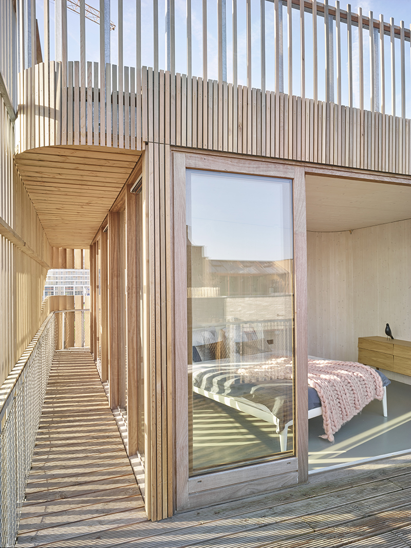 Among other features of this building, the movement of the sun throughout the year has been studied to create the parametric shape and positioning of the building's shutters, allowing sunlight to flood the apartment and at the same time maintaining the necessary privacy of the inhabitants