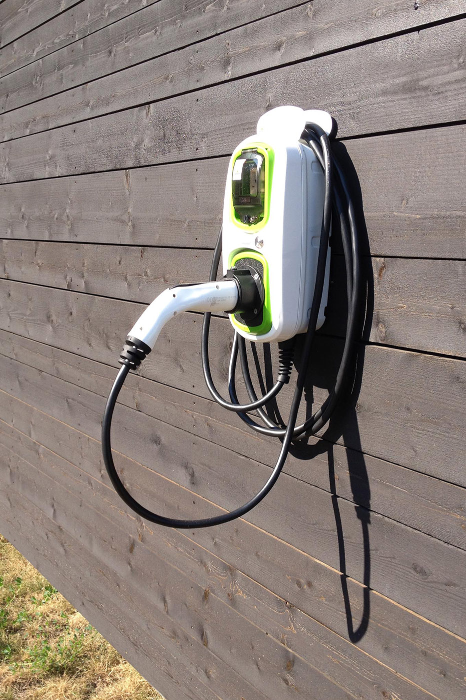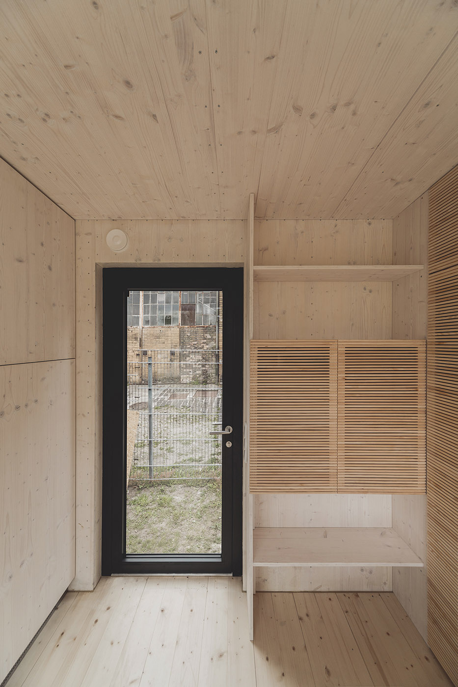 The building was produced in the factory, assembled and delivered by truck. Only one day was needed for the installation on the prepared site. Thanks to the photovoltaic panels on the roof, in combination with a storage system, the building houses a charging station for electric vehicles