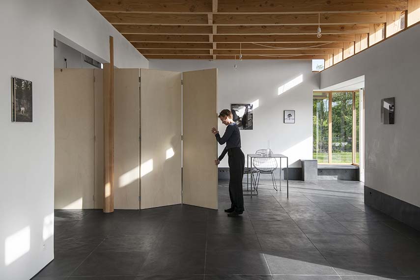 Wim Goes Architectuur a ainsi interprété le passage de la galerie à la maison (et de la maison à la galerie) avec un espace en communication continue qui ne détermine pas une nette séparation entre l'intérieur et l'extérieur ni même des distinctions écologiques du contexte. C'est le substrat principal de l'ensemble du projet architectural.