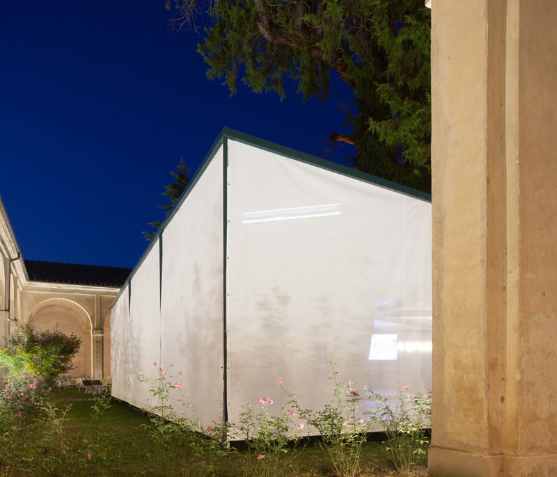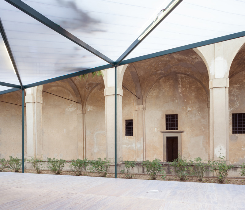 Inside the Certosa di Pontignano, a 13th century Carthusian monastery on the outskirts of Siena, the Supervoid architecture studio based in Rome, designed the "Garden Pavillion", a temporary structure located in the entrance cloister.