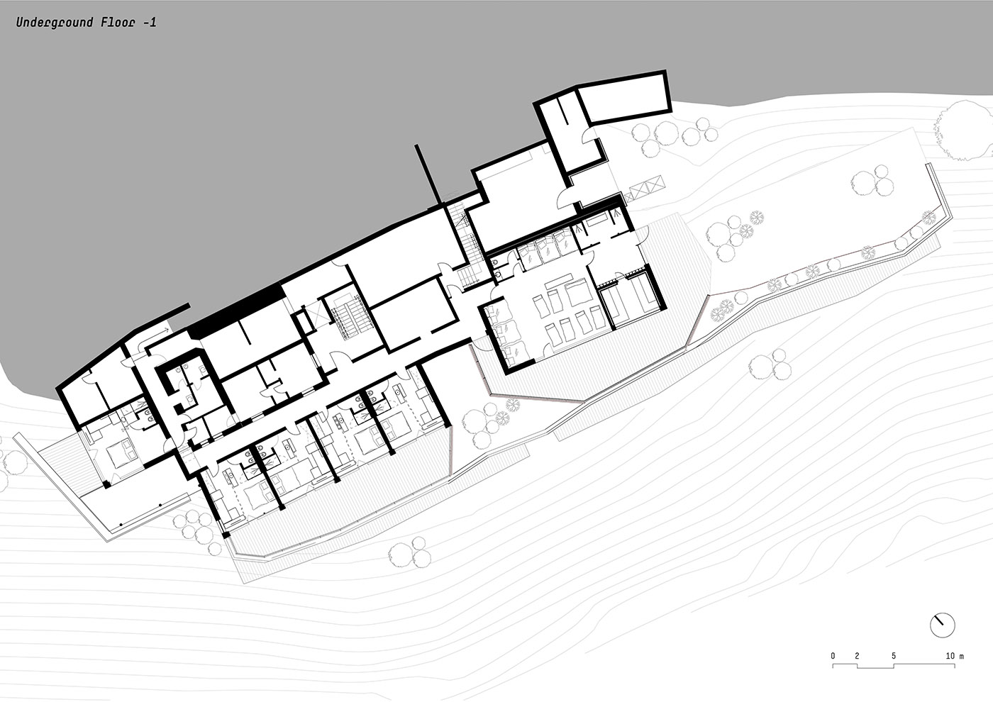 The architects opted for the unusual solution of an underground construction: the architecture was eliminated to allow a continuous view of the natural scenery.