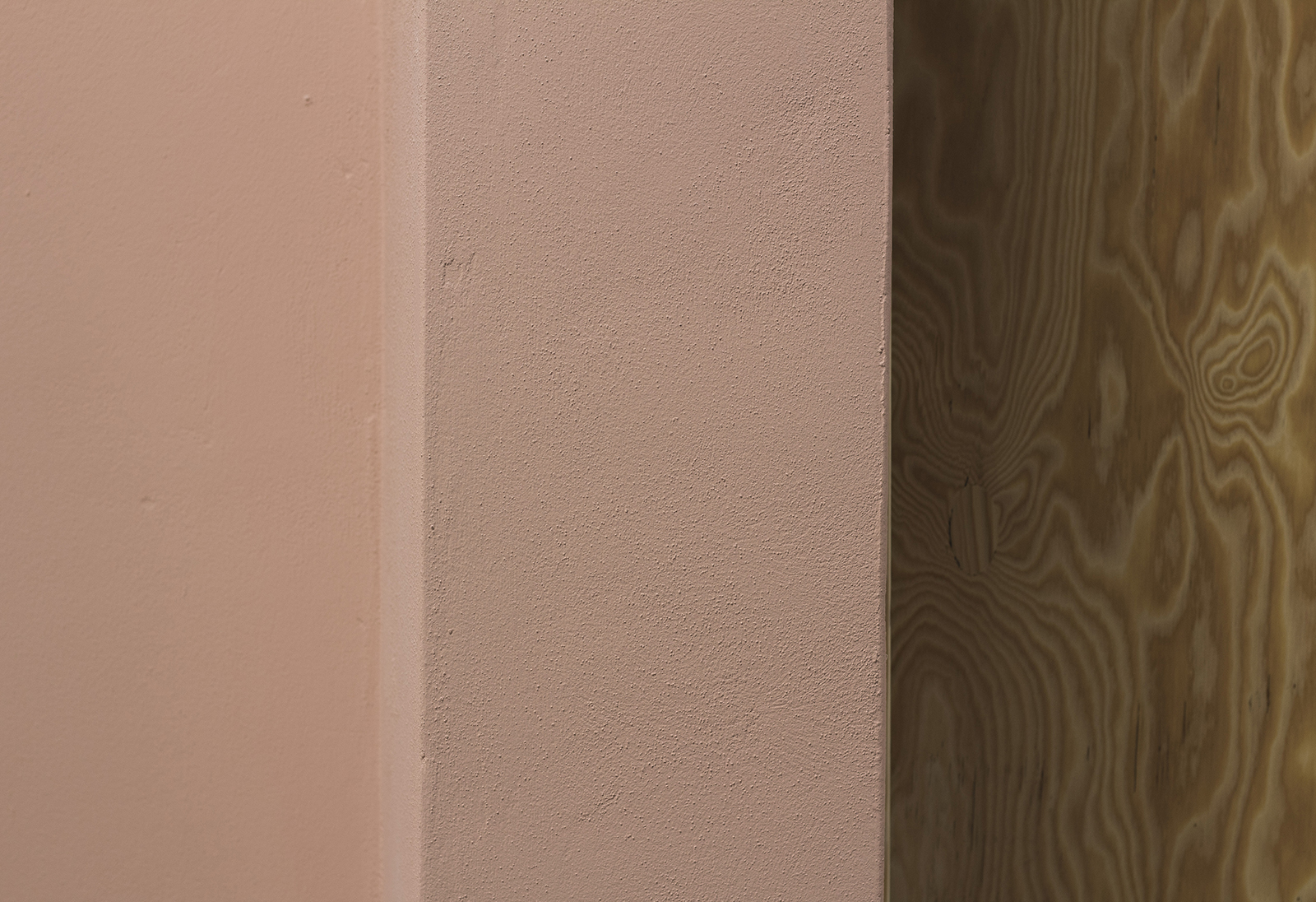 La pavimentazione è stata realizzata in cemento mentre gli arredi, i rivestimenti e le porte sono in compensato realizzate su misura