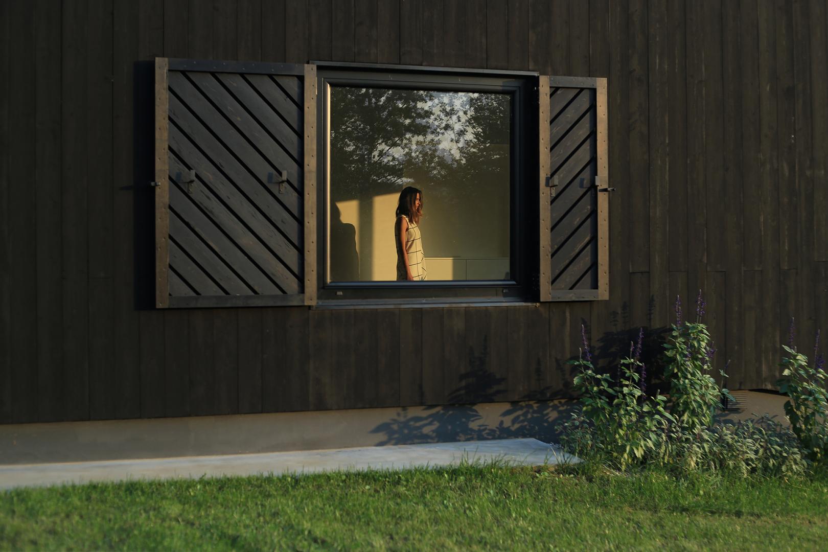 L'aspetto della struttura compatta e apparentemente monolitica, nera durante il giorno è alterata in serata accendendo le luci. La casa diventa quasi una lanterna come fosse un oggetto, luce sui suoi dintorni attraverso le fessure dell'otturatore imitano i raggi del sole che illuminano l'interno durante il giorno