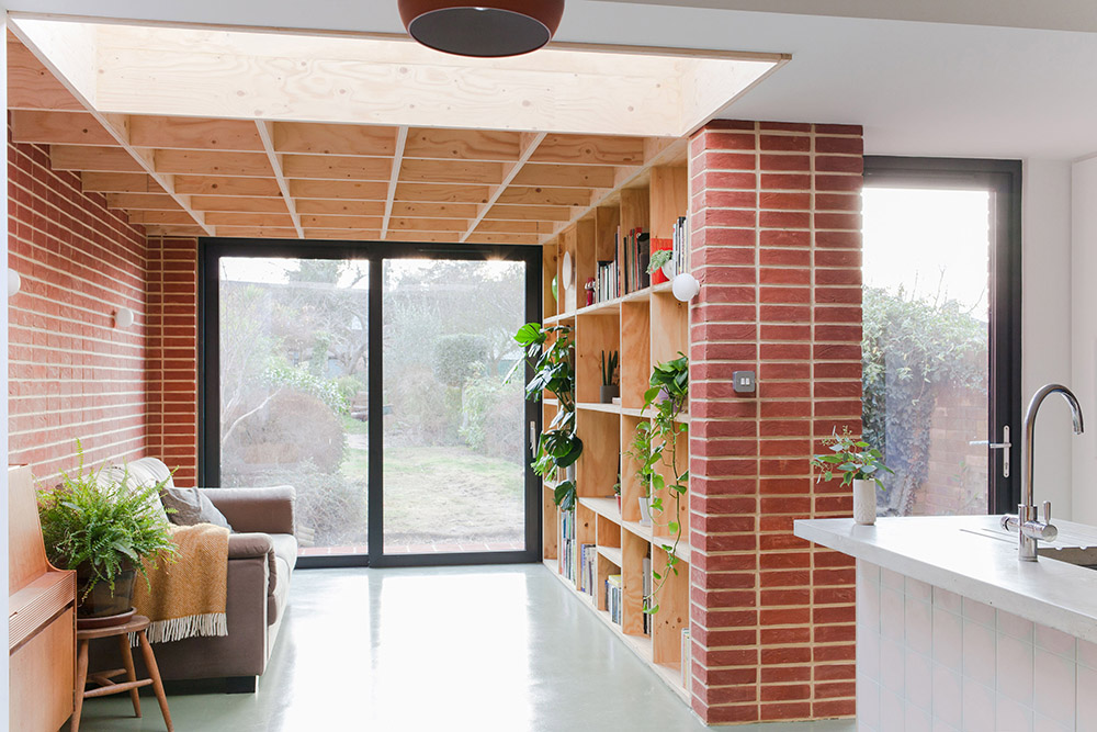In a house in south London, nimtim architects studio considered its clients' modest budget and designed a materially and spatially rich space, with a wooden structure and brick cladding