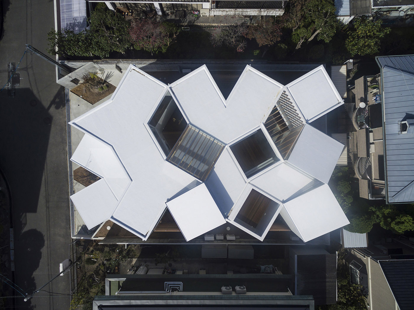 The owner of the house is a family, who wish to have many rooms. The main functions have been included in the square parts of the floor, while the rhomboidal areas can be used freely. The structure is closed to the outside: there are three spaces used as a garden along the external perimeter and two courtyards inside.