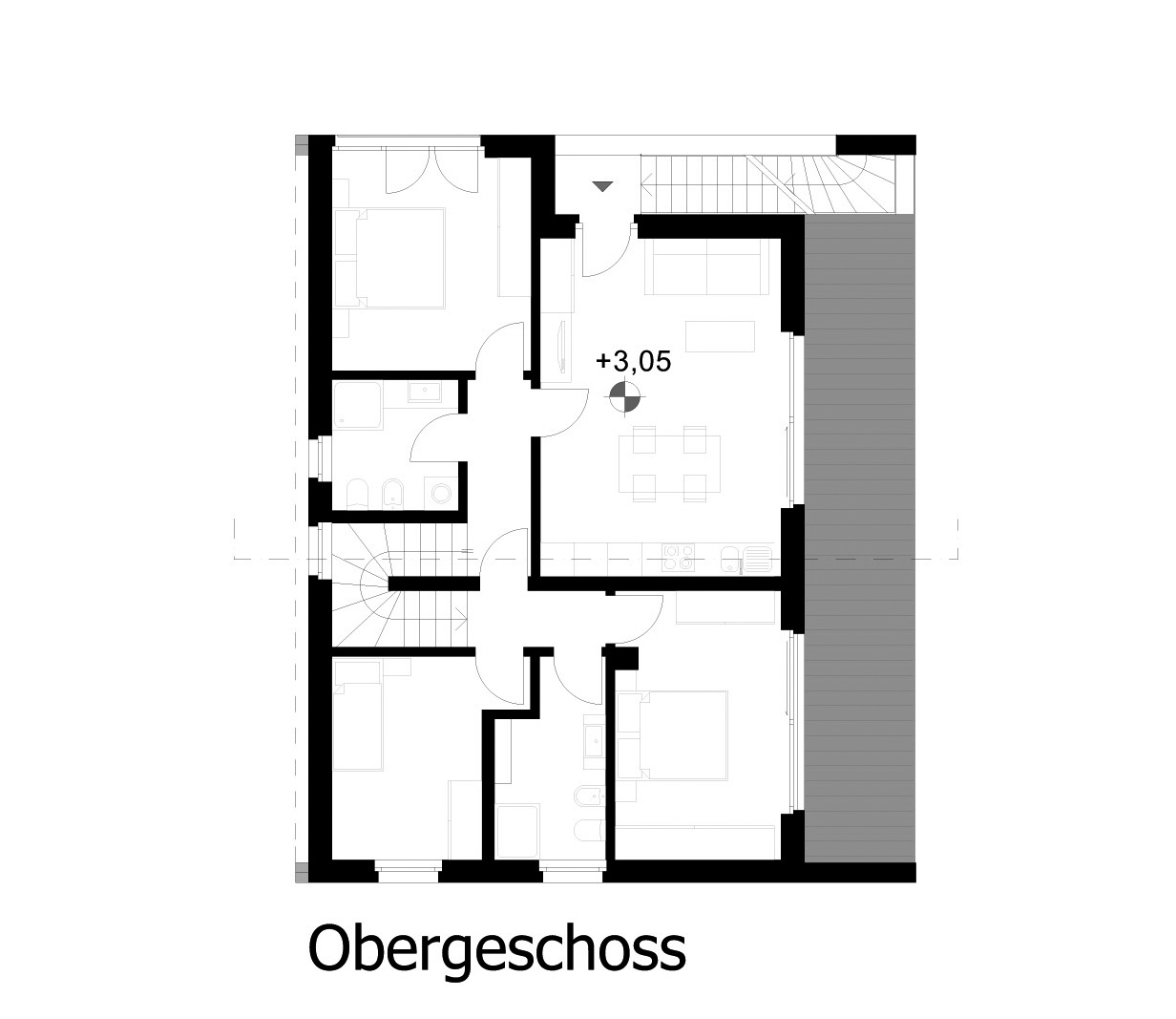 The new wooden structure houses the access stairs to the new apartment on the upper floor, protecting them from the weather and ensuring users maximum comfort and safety in all weather conditions. The expansion has been realized with a wooden frame structure that has permitted a faster execution of the works compared to other wet techniques and has allowed the achievement of very low transmittance values: 0,13 W/m² K thanks to the use of wood fibre both as a coat and as a filler for the structure. The existing casing, consisting of a mixed structure and a stone wool coat, has been improved by adding an additional wood fibre insulation layer, thus achieving a transmittance value of 0.19 W/m² K