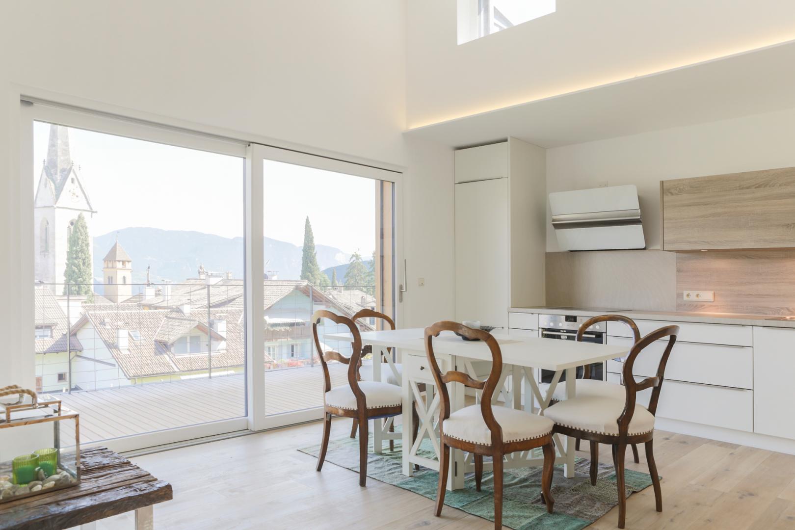 The intervention carried out by Architect Manuel Benedikter involved the complete renovation of the apartment in the attic and the renovation of the rest of the building in order to improve energy efficiency.