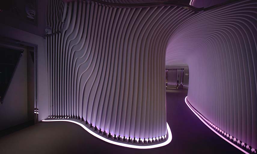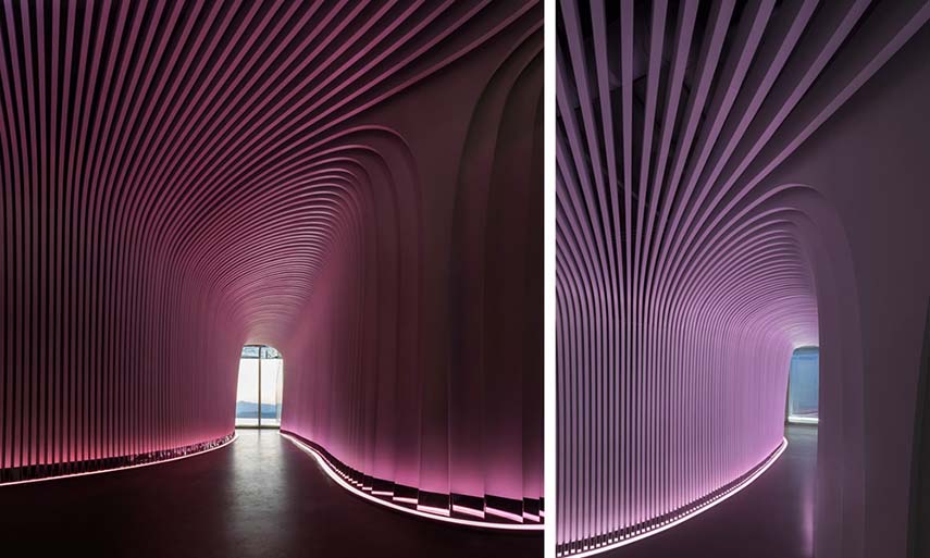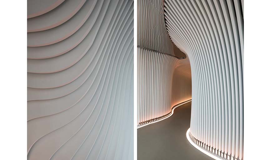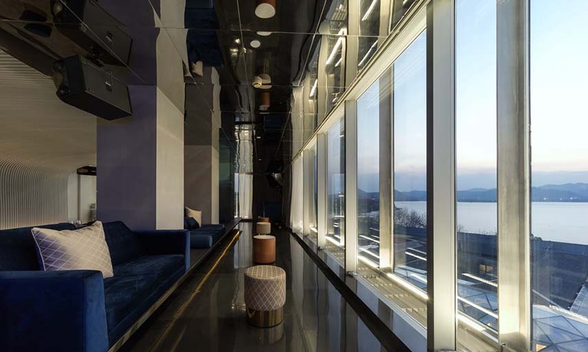 Réalisés en collaboration avec Studio Waffles, le V+ Lounge est l'un des projets de design d'intérieur spectaculaires de LYCS Architecture. Le bâtiment est situé dans un emplacement stratégique de la ville: sur un terrain d'angle entre les rues de la zone commerciale la plus animée autour du lac et à moins de 100 mètres du plus grand magasin phare d'Apple en Asie. Le concept du projet est né de l'inspiration de traduire en design l'eau du lac