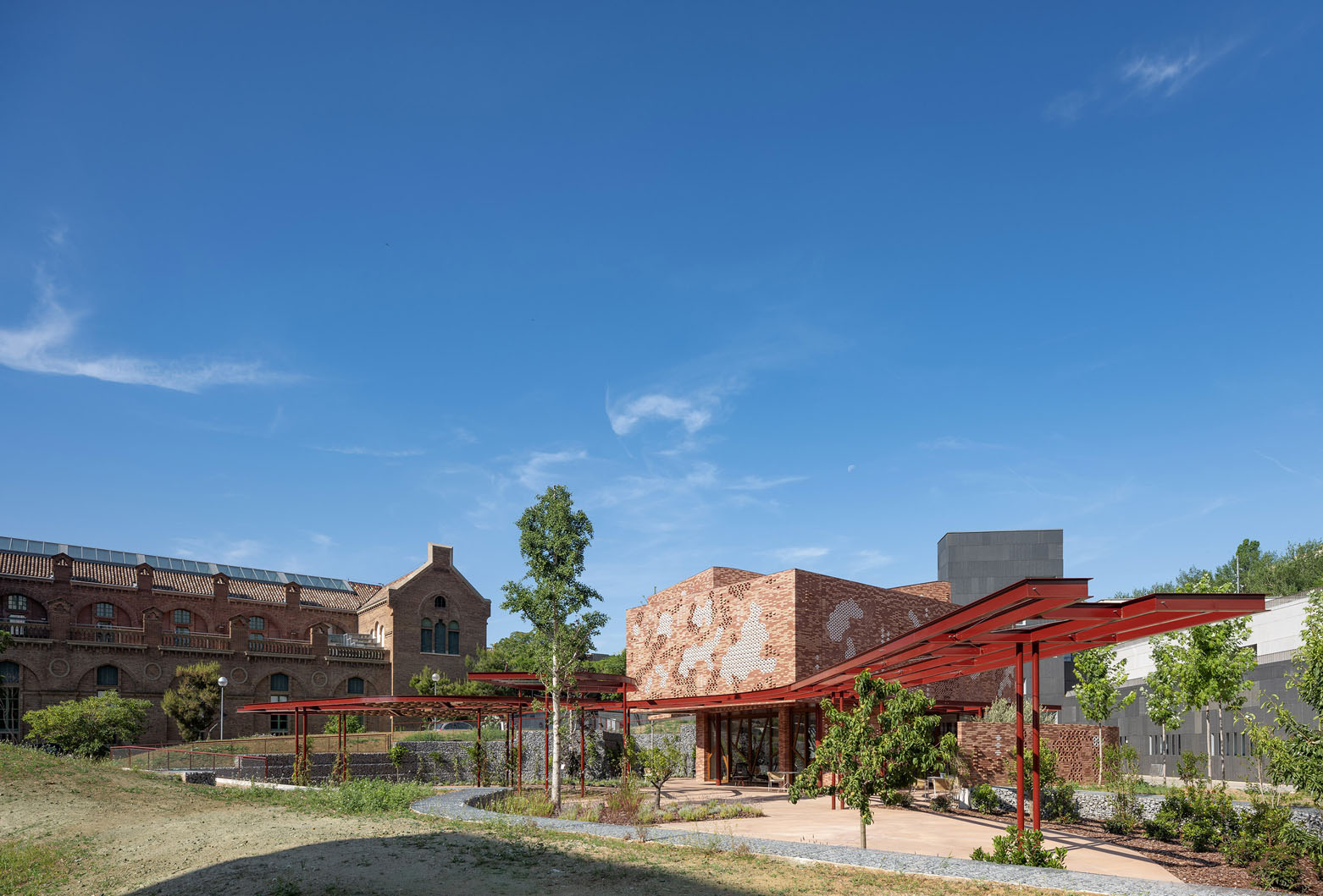 With extreme sensitivity, the architects of Miralles Tagliabue EMBT designed this small medical centre conceived as a garden pavilion surrounded by colourful flowers, where the boundaries between inside and outside blur and vary. The Centro Kálida plot is located between the new hospital and the original Art Nouveau buildings