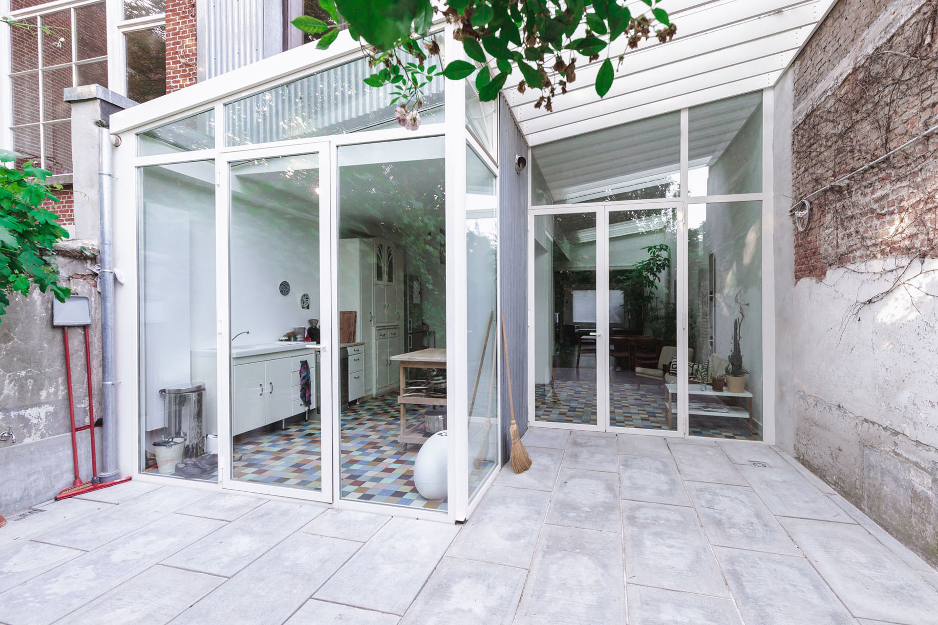 Belgian architectural studio Poot Architectuur intervenes in the replacement of a roof in a dwelling, obtaining a result that significantly changes the appearance of the back of the building, creating an expansion of the kitchen and a covered terrace