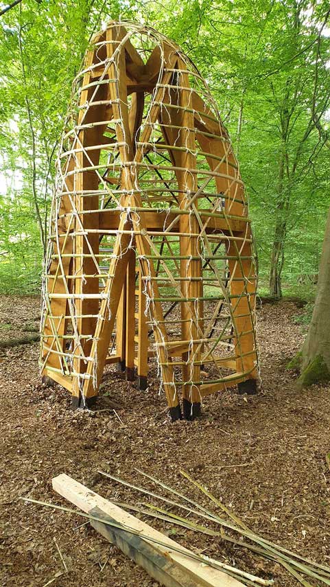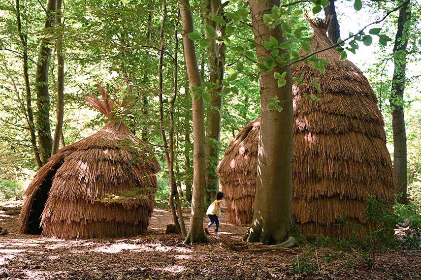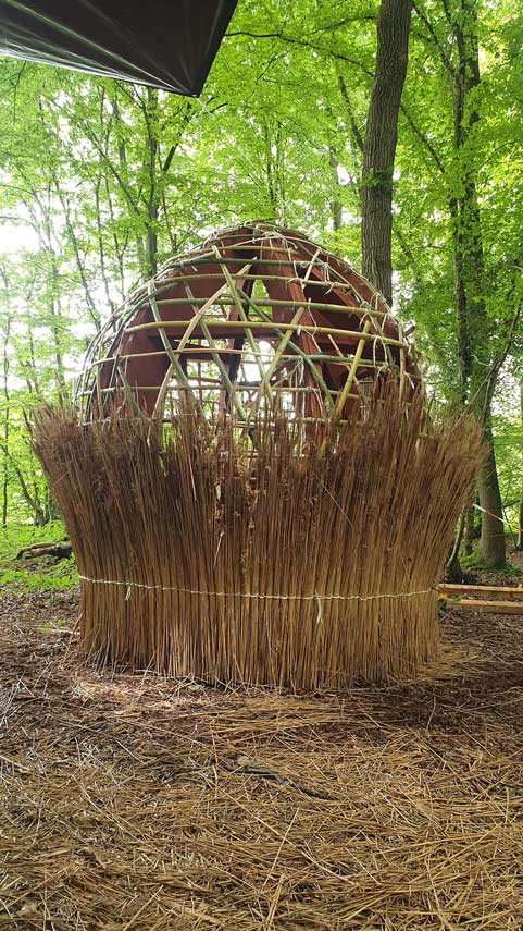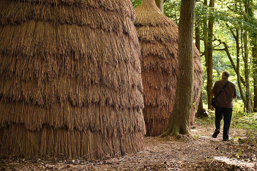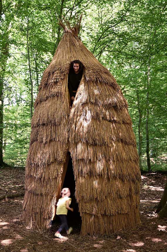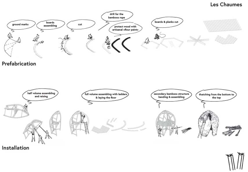 Les Chaumes sont l'un des derniers projets d'architecture de l'Atelier Yok Yok; leur vue évoque un rassemblement d'êtres de la forêt dans une atmosphère onirique. Les trois œuvres incarnent différents archétypes dont l'architecture est porteuse: le vêtement, comme expression de soi et protection contre l'extérieur; l'architecture vernaculaire comme origine de l'habitat; le totem comme repère et focalisateur de l'attention, etc. En entrant dans les trois créatures "habitables", on peut devenir des géants revêtus de poils hérissés en roseau et redevenir des enfants en se cachant dans leurs ventres protecteurs