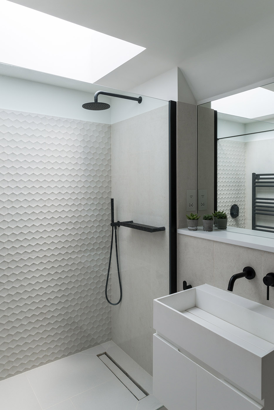 La solution a été de créer une extension de deux étages à l'arrière du bâtiment, clairement séparée du bâtiment préexistant par un couloir de lumière. L'extension a fourni un espace généreux pour une grande chambre principale avec salle de bains, donnant ainsi aux concepteurs la possibilité de concevoir une salle à manger et un salon en espace ouvert au rez-de-chaussée, créant une parfaite liaison entre l'ancien et le nouveau