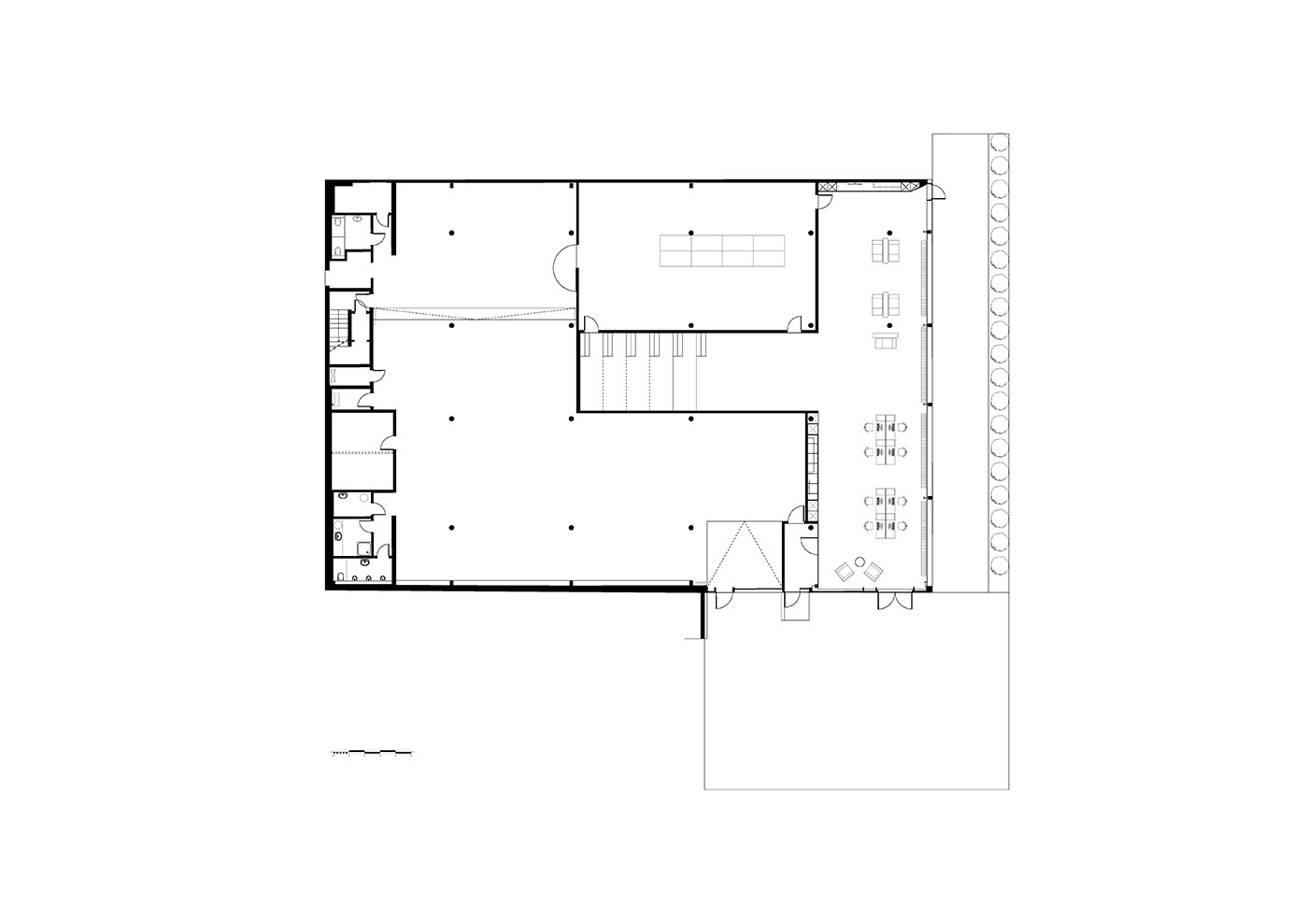 L'ancien entrepôt de Steinsel, situé à Nommern, au Luxembourg, est transformé en bureau pour une entreprise spécialisée dans les solutions informatiques. L'objectif principal du projet était de permettre à la lumière naturelle d'inonder autant que possible l'espace, tout en préservant plusieurs caractéristiques d'origine du bâtiment