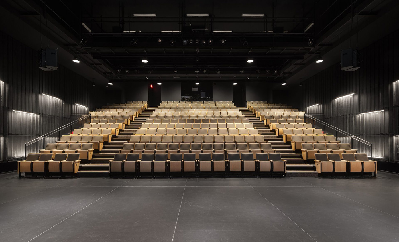 The project required the renovation of the building as well as the replacement of the electromechanical installations. The cultural centre includes an auditorium, an exhibition hall, a cafeteria, an entertainment room and administrative spaces. To underline the new civic vocation of the site, a new square and a tensile structure were added to the front of the building