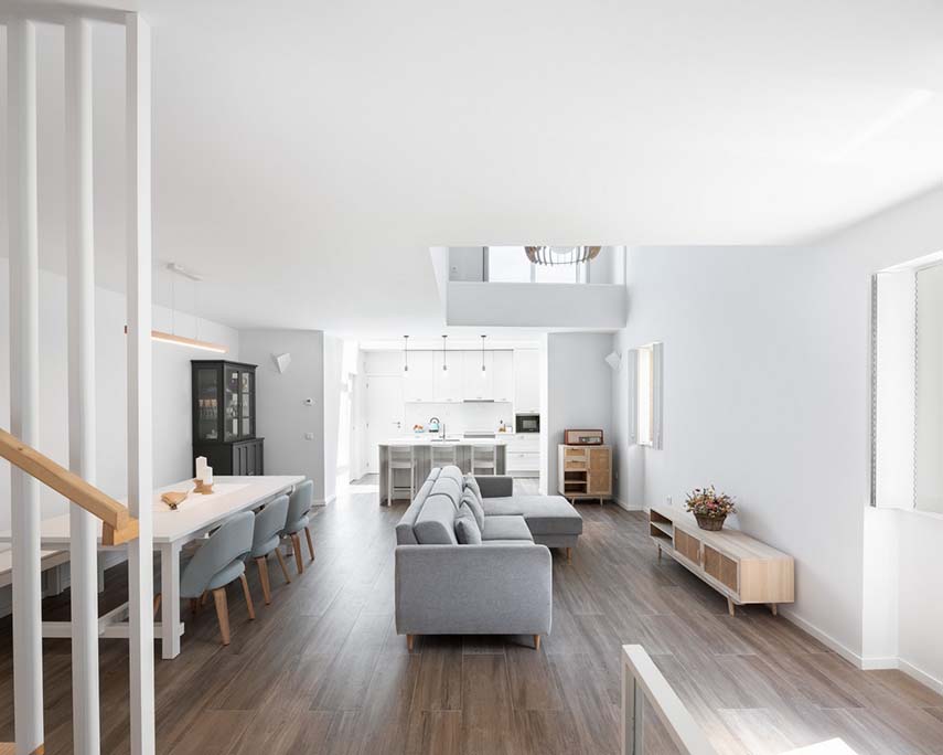 Cette maison était initialement un bâtiment d'un seul étage et a été transformée en un bâtiment à deux étages pour augmenter la habitabilité de l'espace existant.