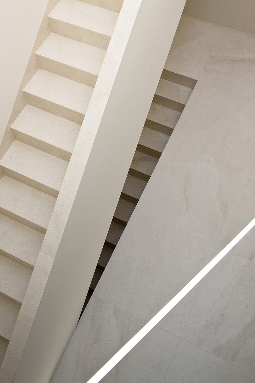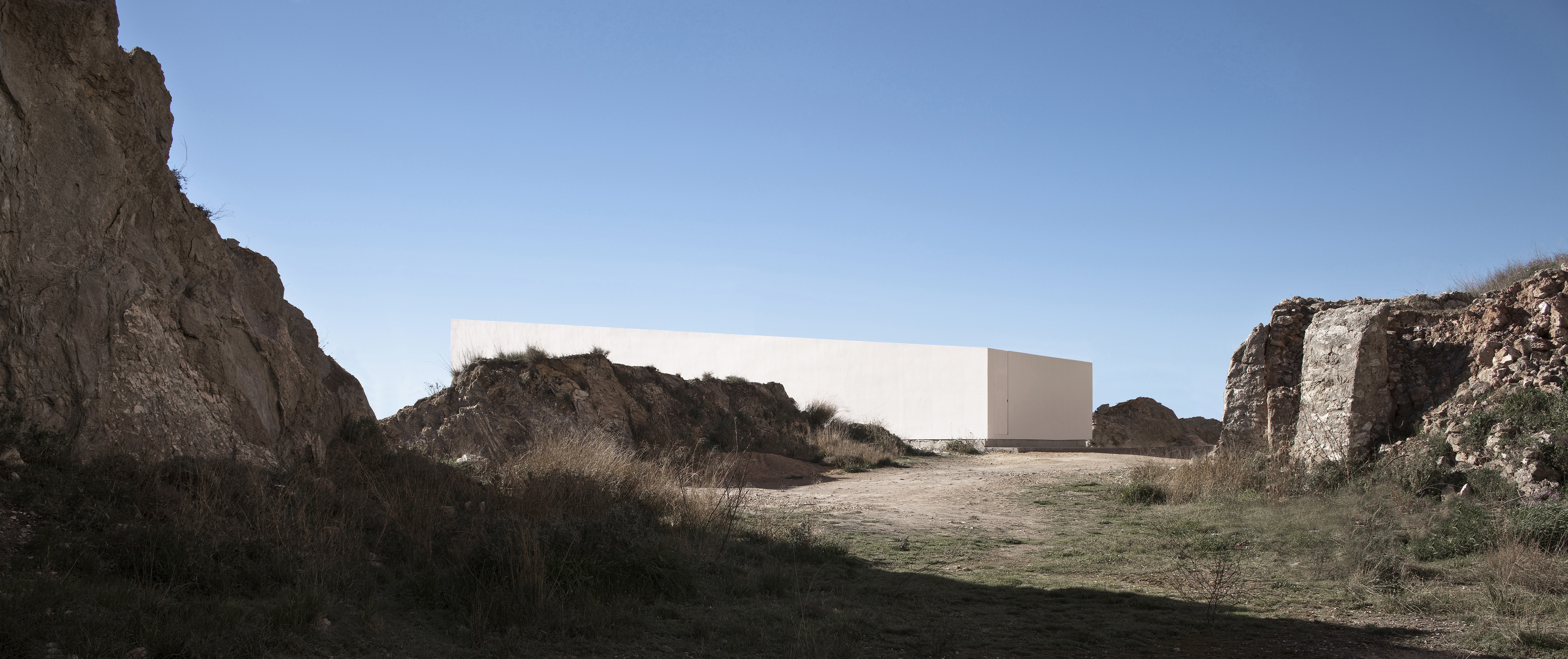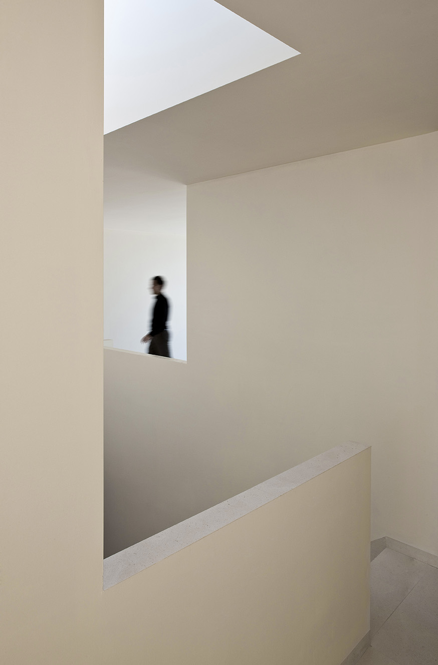 Une œuvre d'art construite dans le même calcaire blanc du même massif montagneux dans lequel se trouve l'intervalle, exploitant sa texture et se positionnant dans ses "vides", pour s'intégrer dans la fragmentation de l'environnement. L'espace intérieur de la maison est articulé par le vide, dans lequel le noyau de la distribution est disposé parallèlement au bord de la montagne, sans la toucher