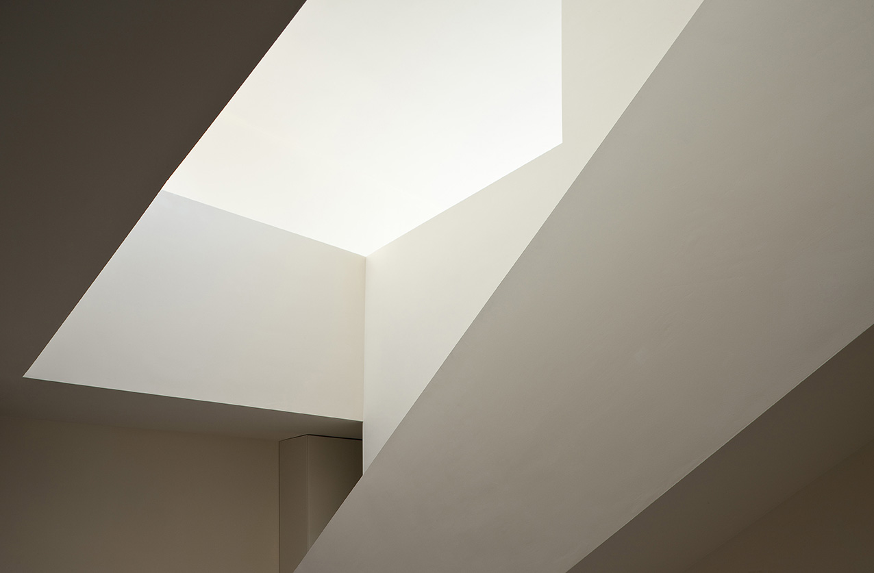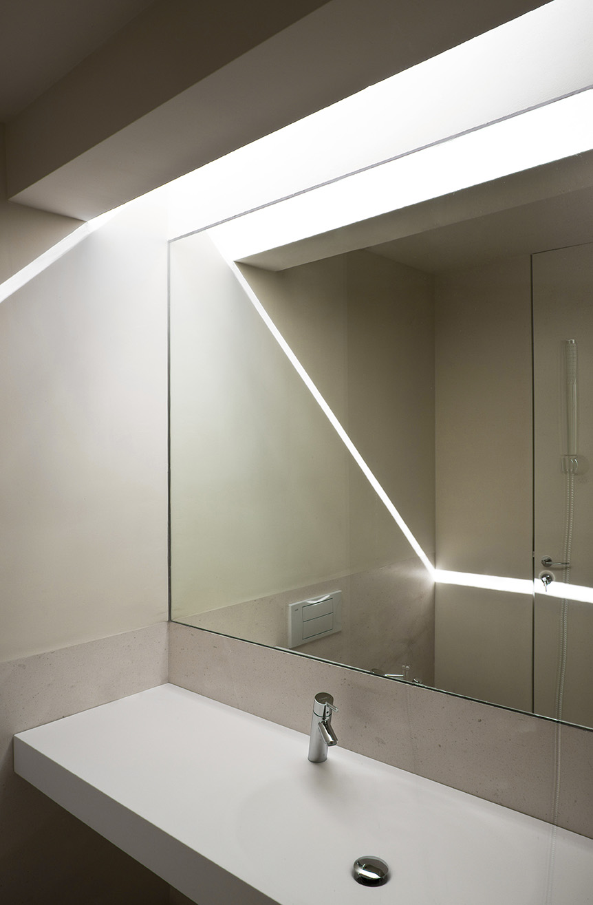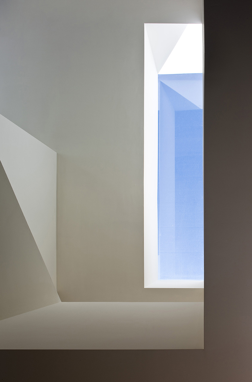 Une œuvre d'art construite dans le même calcaire blanc du même massif montagneux dans lequel se trouve l'intervalle, exploitant sa texture et se positionnant dans ses "vides", pour s'intégrer dans la fragmentation de l'environnement. L'espace intérieur de la maison est articulé par le vide, dans lequel le noyau de la distribution est disposé parallèlement au bord de la montagne, sans la toucher