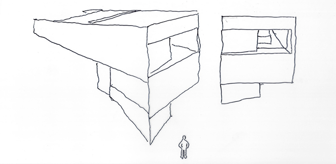Une sculpture géométrique qui, dans sa rationalité, cherche à émuler la montagne, en mettant en valeur ses formes, créant une interaction entre les plans architecturaux et naturels