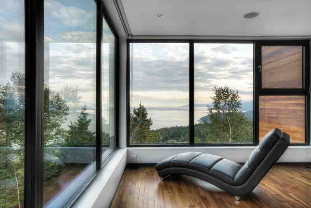 Résidence en bois avec des vues imprenables. Volumes géométriques et intégration dans le paysage