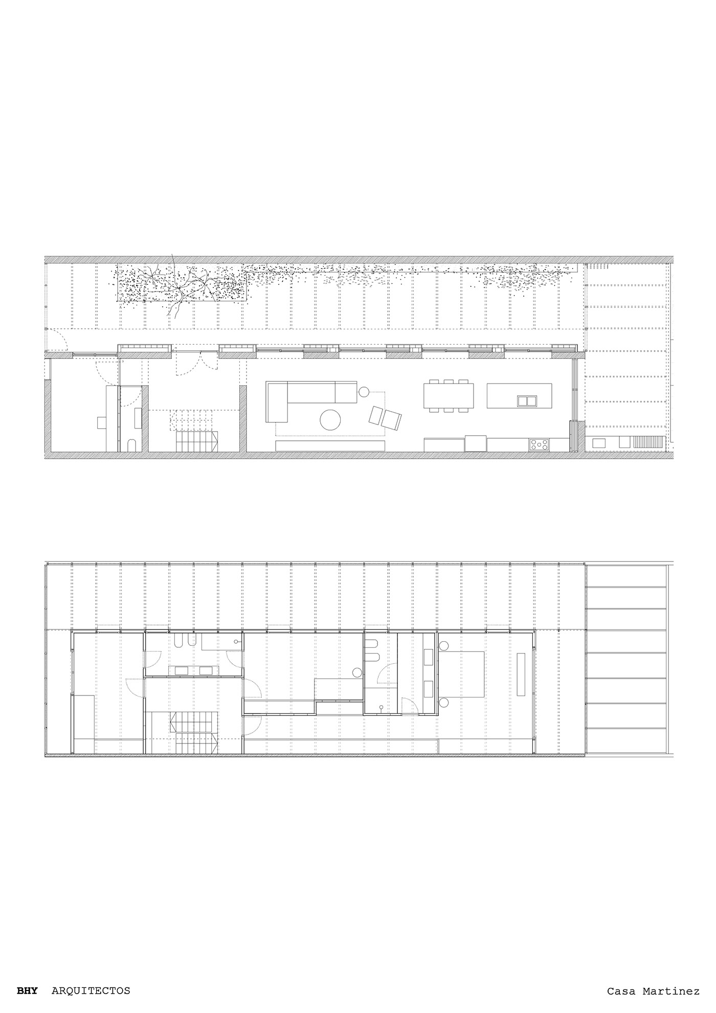 La "Casa Chorizo" est une typologie de logement traditionnelle apparue à Buenos Aires à la fin du XXe siècle, représentative de la classe moyenne urbaine et des vagues migratoires de la fin de l'époque. Elle se caractérise par une succession de pièces le long d'une cour longitudinale qui sert de noyau unificateur à l'habitation. Grâce à la conception de BHY architectes, la cour elle-même devient un espace central, structuré par une grande enveloppe lumineuse qui contribue également à stabiliser l'étage supérieur de la Casa Martínez