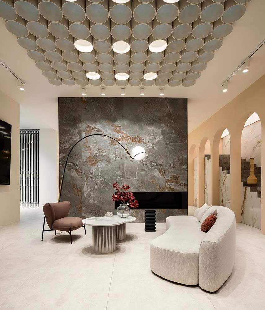 À la recherche d'un cadre formel qui répondrait de manière cohérente aux exigences du cahier des charges, l'équipe de conception de Paolo Cesaretti a trouvé l'inspiration dans un style qui peut être défini comme "moderne méditerranéen". Ce style, prévalent dans les zones côtières autour de la mer Méditerranée, mélange harmonieusement des éléments classiques avec des caractéristiques contemporaines. Des éléments tels que les arches, les escaliers emblématiques, les textures rugueuses et les tons terre contribuent à son aspect intemporel mais moderne. Des exemples notables, tels que la Casa Malaparte à Capri et les villas de vacances conçues par Gio Ponti le long de la Riviera italienne du Nord, illustrent l'essence de ce style architectural, servant de références inspirantes dans le processus créatif