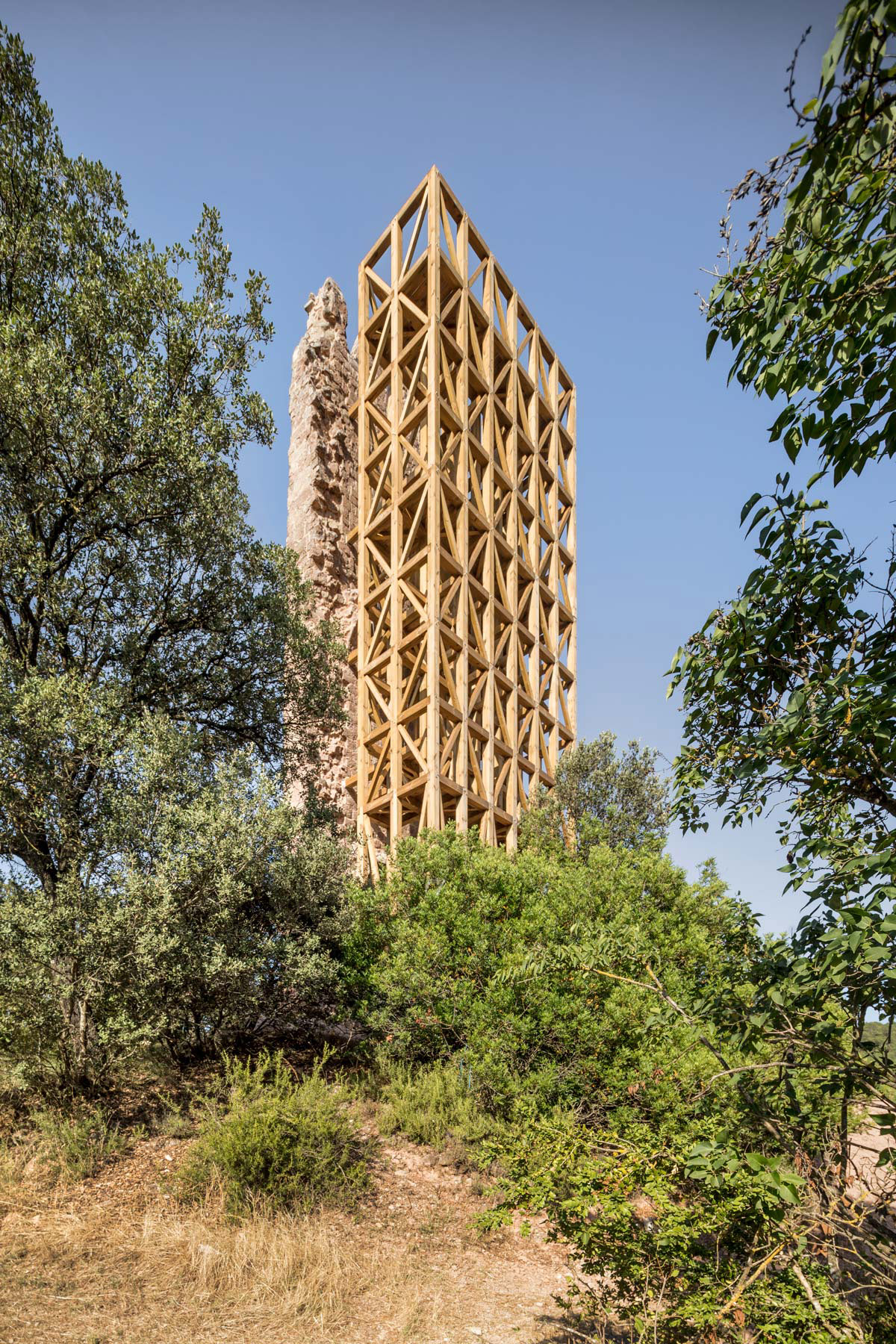 Au sud de Puig-reig se dresse Merola's Tower, dernier témoin d'un château du XIIIe siècle. Carles Enrich Studio a mené une intervention délicate pour préserver ce qu'il reste de la tour, menacée par le risque d'effondrement en raison des séismes de 1500. Le projet, faisant partie d'une vision plus large sur les projets de rénovation, protège non seulement le site historique, mais le rend également à la communauté et aux visiteurs, en en faisant un point de référence culturel.
