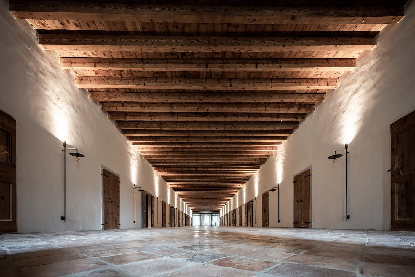 De l'ensemble de ces interventions est né un lieu particulier, comme le décrit l'architecte Padovan du studio noa* : 'Un refuge capable d'offrir des expériences anciennes, valorisant au maximum la particularité et l'histoire du lieu. Et où chaque choix de construction, chaque matériau et détail ont été étudiés pour tirer force de la monumentalité du contexte préexistant, en l'exaltant et en lui donnant une nouvelle vie'.