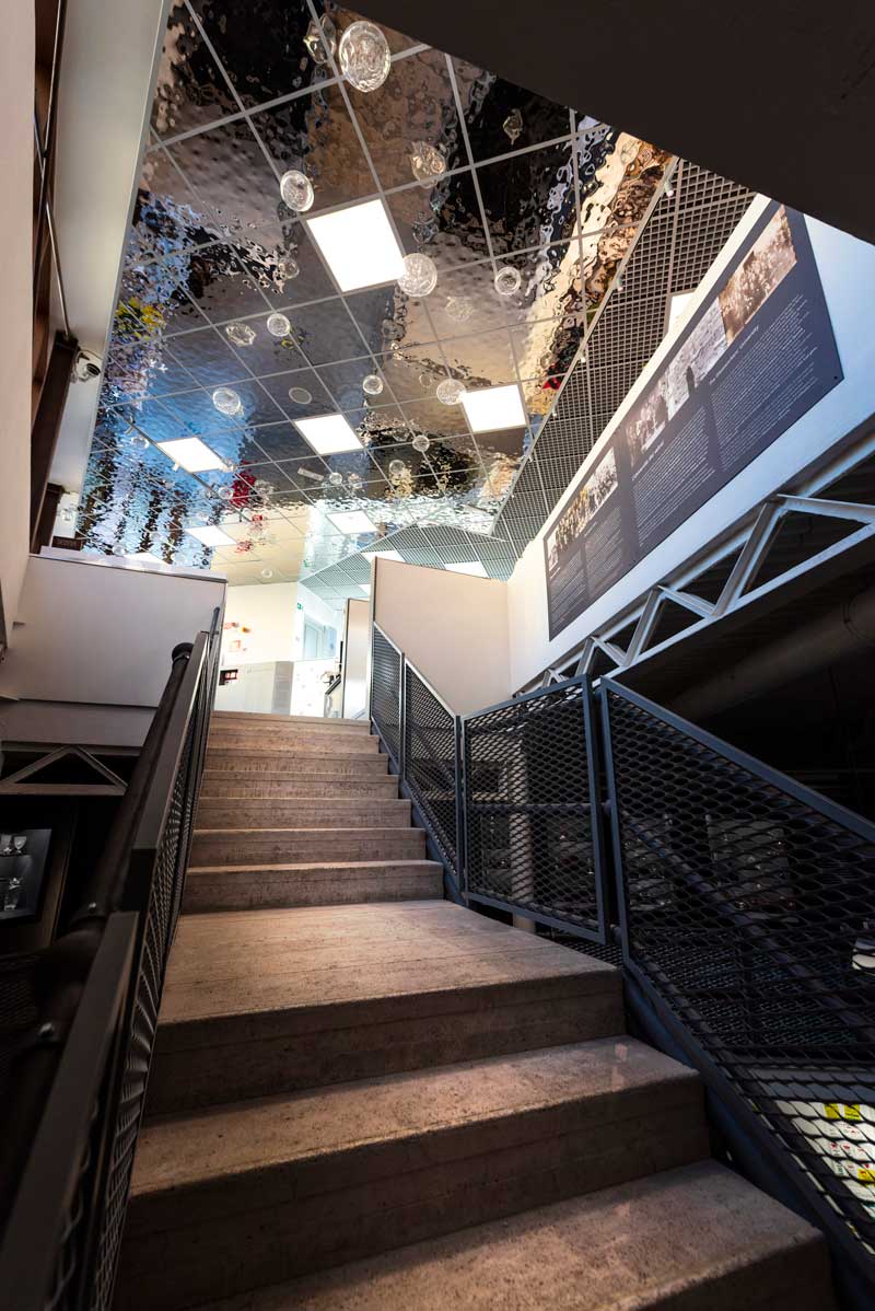 Multimedia insights enrich the experience, taking the visitor into the world of design and crystal: a multimedia room offers a documentary that tells, through interviews with artisans, entrepreneurs, and artists, the world of glass and crystal, highlighting the social impact on the development of the local and international community.
