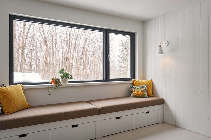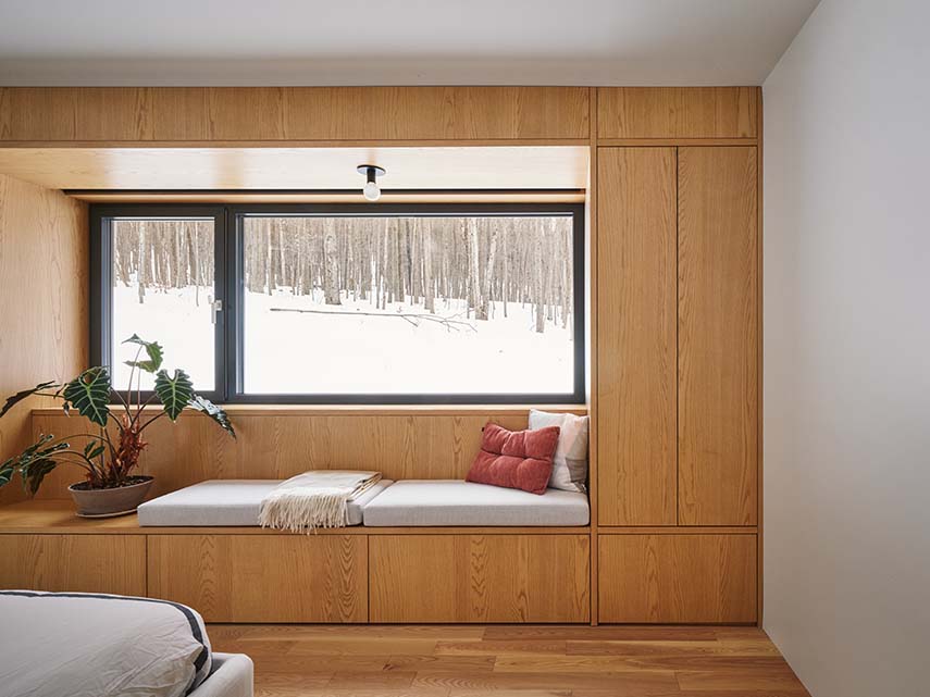 Le cabinet d'architecture canadien La Nony FAMILI, en parfaite harmonie avec la famille propriétaire, propose pour la rénovation de la maison de vacances de ne pas démolir l'ancienne structure mais de l'innover dans le principe de la valorisation du patrimoine existant et de l'éco-responsabilité. La Ash Tree House répond désormais au souhait des commanditaires d'avoir un chalet moderne pour les sports d'hiver, confortable et fonctionnel, où la nature entre visuellement dans la maison et où le passé est honoré et intégré