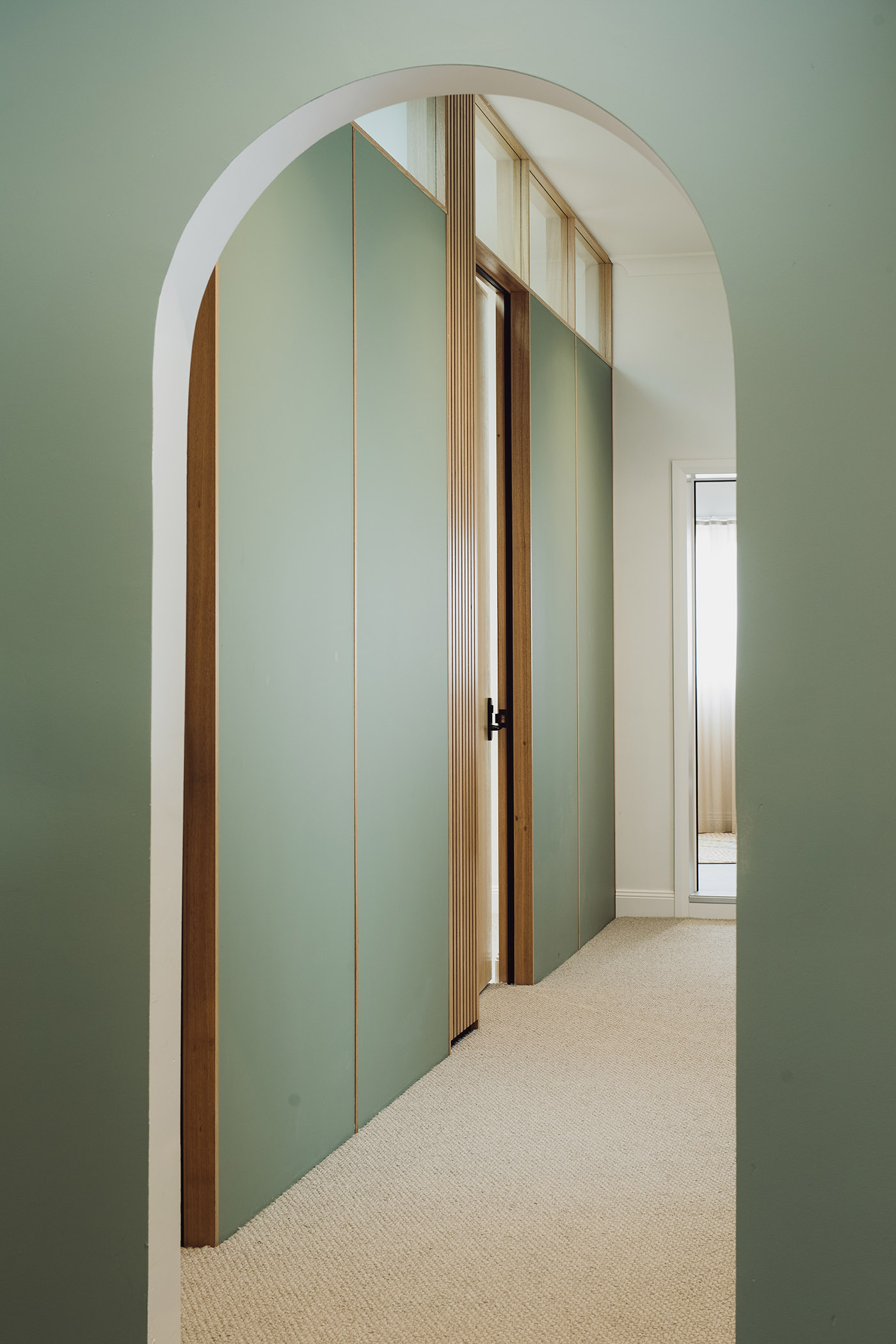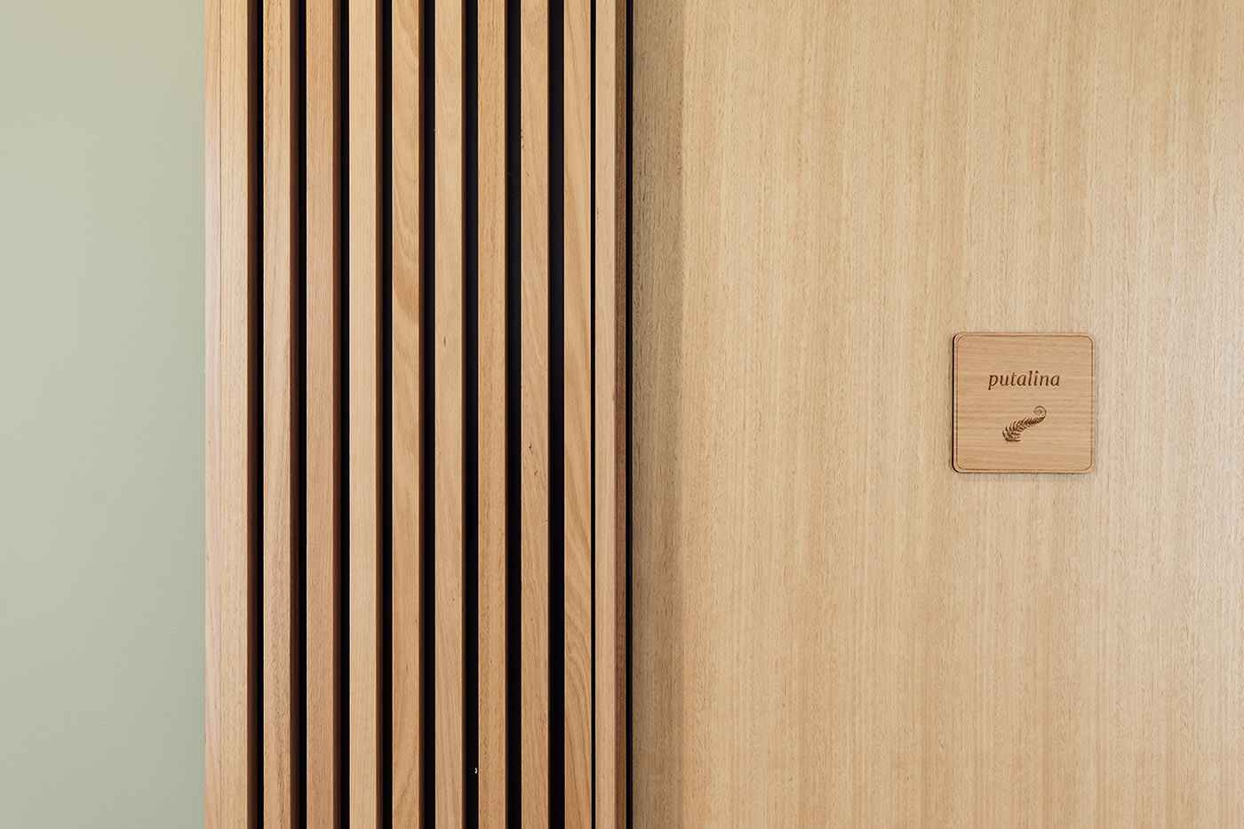 Tasmanian oak wood, which has a particular way of wearing out, brings natural warmth and informality. We find it in several applications within the practice: wood slats at the reception create a texture of light and shadow; it also wraps around threshold spaces, transitioning to solid paneling in the counseling rooms and minimal treatment in the back of the building