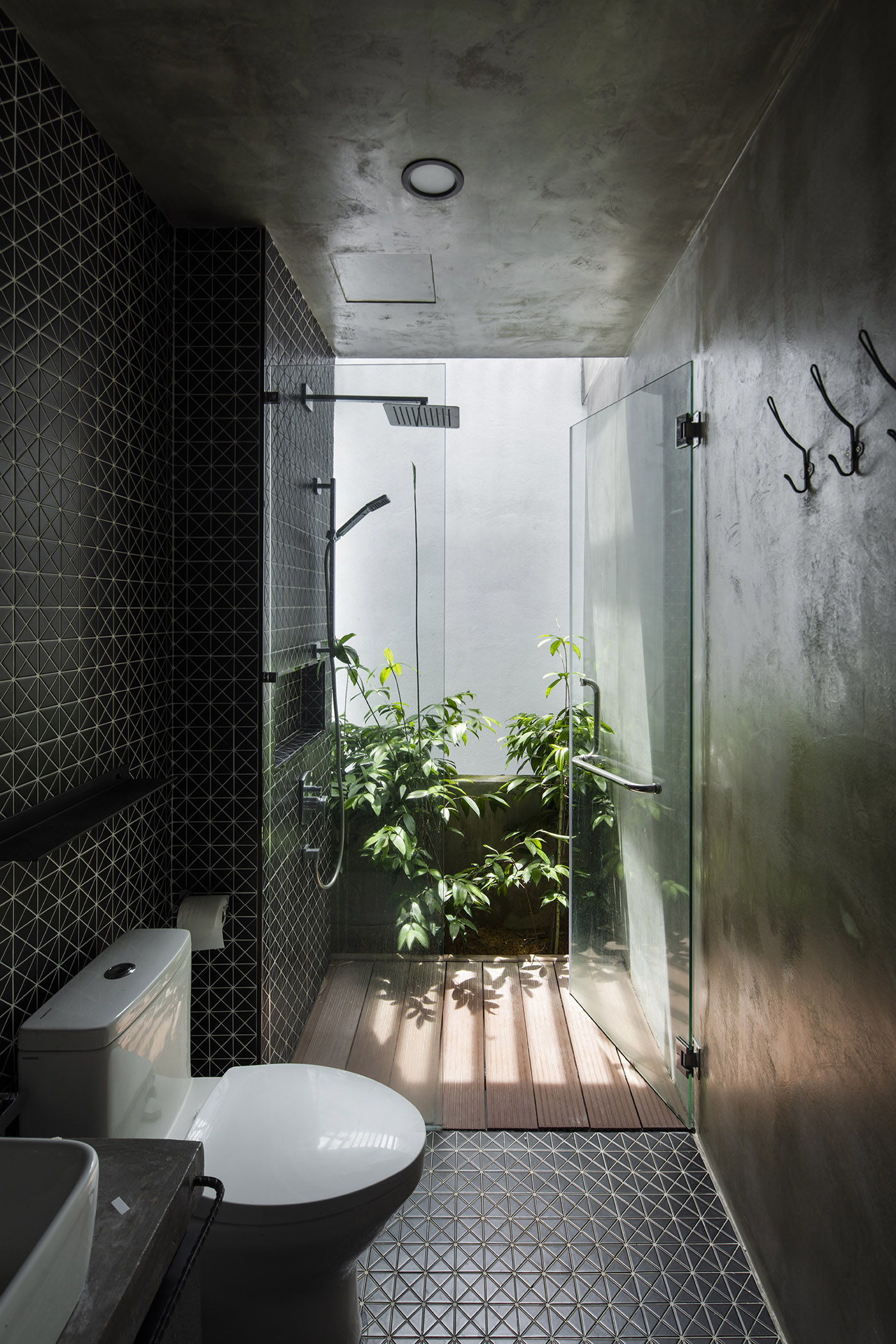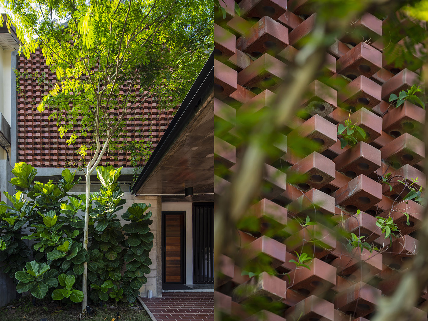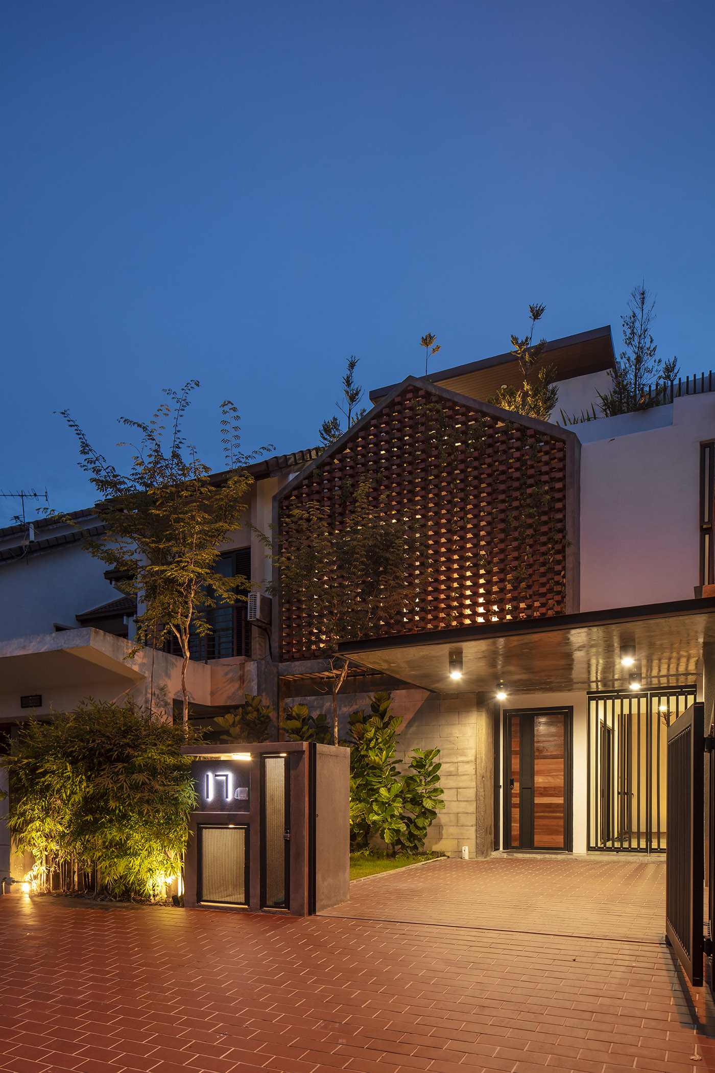 La rénovation de la maison réalisée par N O T ARCHITECTURE SDN BHD a prévu une rénovation complète où pour le design de la façade principale une sorte de membrane constituée de briques assemblées selon un tissage permettant l'entrée de la lumière naturelle et de l'air à l'intérieur de la maison a été réalisée ; ce mur filtre agit également efficacement comme écran pour l'intimité et comme barrière de sécurité anti-effraction.