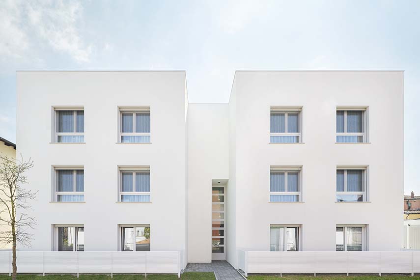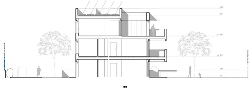 Commencé en 2019 et terminé en 2024, le bâtiment de la via di Corticella est l'un des projets d'architecture réalisés par le cabinet professionnel d'Andrea Trebbi. L'architecte, qui croit en une architecture comme dispensatrice de bien-être pour ses habitants, dessine ce volume pur, aux lignes essentielles et aux espaces généreux. Les larges terrasses des logements sont protégées par le profond porte-à-faux de la cinquième horizontale métallique de couverture du bâtiment