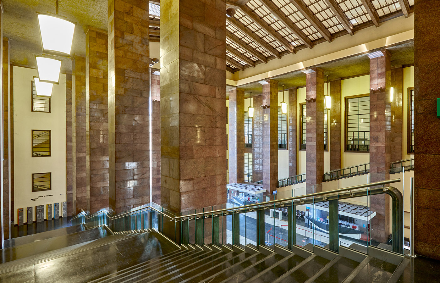 Da un punto di vista estetico Aluvetro ha prodotto i carter di copertura customizzati sulla base delle esigenze, simil-inox o verniciati color Ral per richiamare le cromie dei materiali marmorei presenti sui corpi scale. Tutti i vetri forniti sono trattati termicamente, stratificati e ad elevate prestazioni.