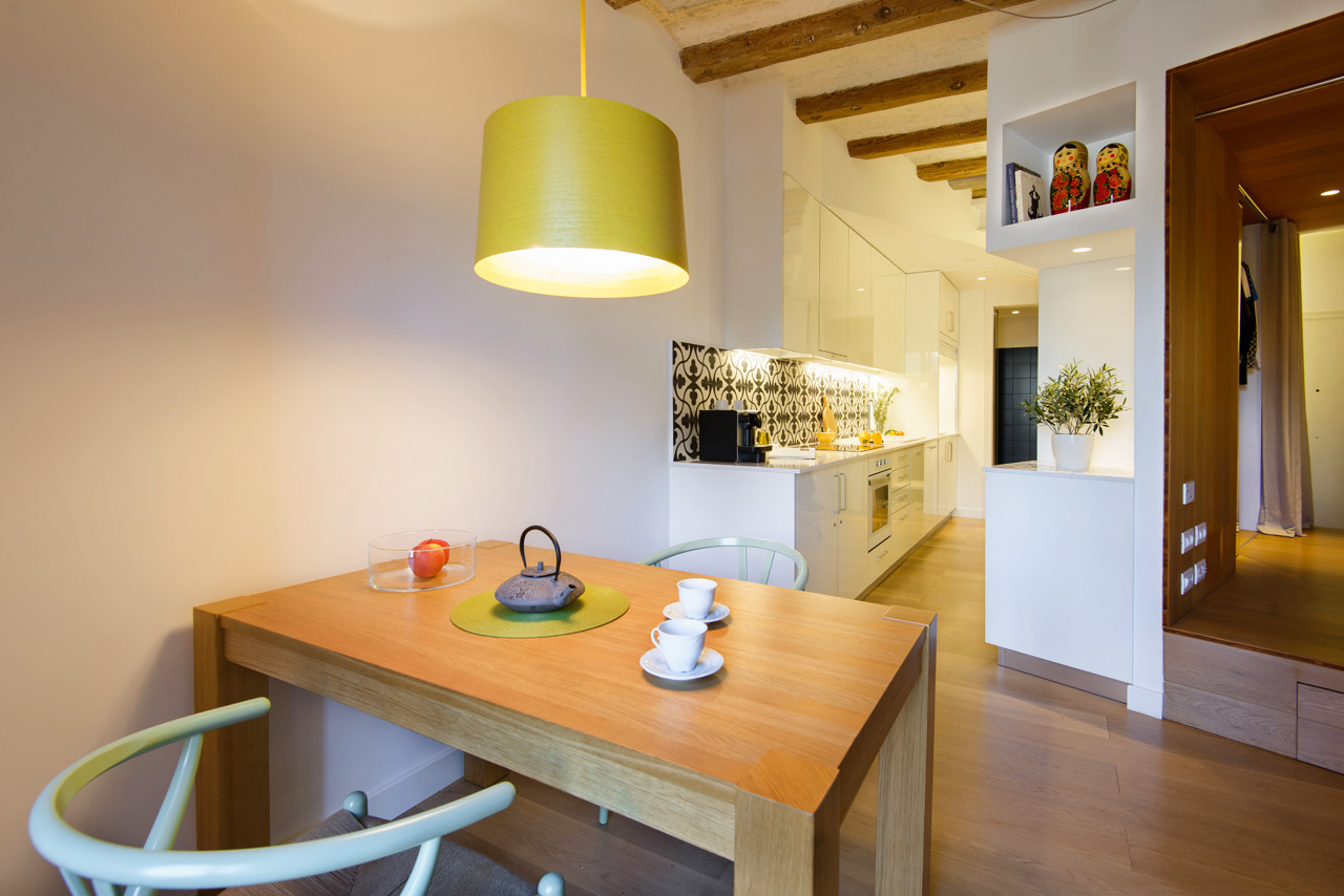 The renovation of the apartment constitutes the research that the Miel Arquitectos studio and the P 10 studio have carried out on the contrasts of urban life in the 21st century, creating a cocoon of peace and tranquillity in the heart of Barcelona
