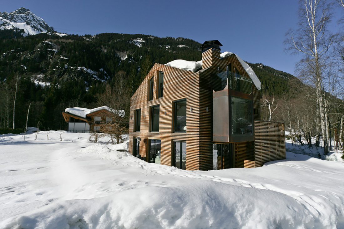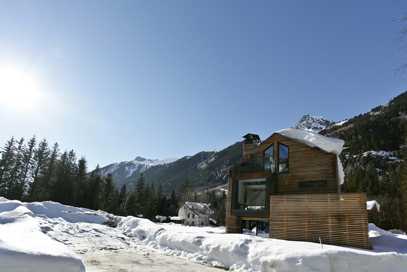 In Les Praz de Chamonix, Chevallier Architectes studio renovates an old shed to create a residence for the Architect, while maintaining the existing volume, the chalet is audacious, with contemporary lines and quality materials