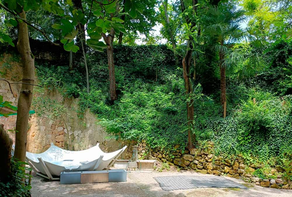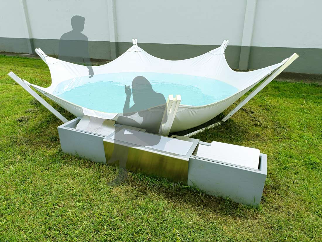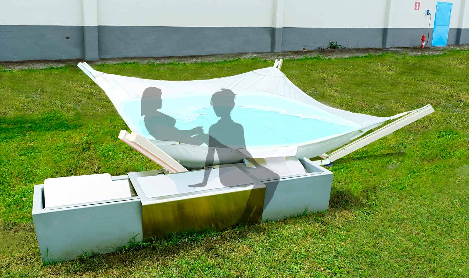 Le résultat de cette collaboration est la "voile d'eau", une installation modulaire qui peut être intégrée à tous les projets extérieurs. Manta Bay est en partie une baignoire et en partie une chaise longue, conçue par l'architecte Francesco Benzi, pour offrir une expérience de bien-être unique et personnalisable. Elle peut être facilement montée et démontée et donc installée sans aucun besoin de travaux de construction, réduisant ainsi drastiquement les délais d'installation et les coûts supplémentaires.