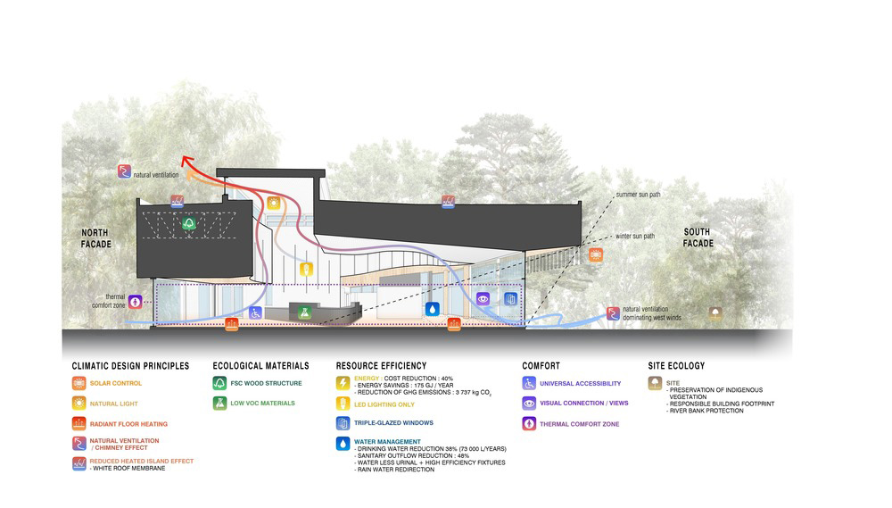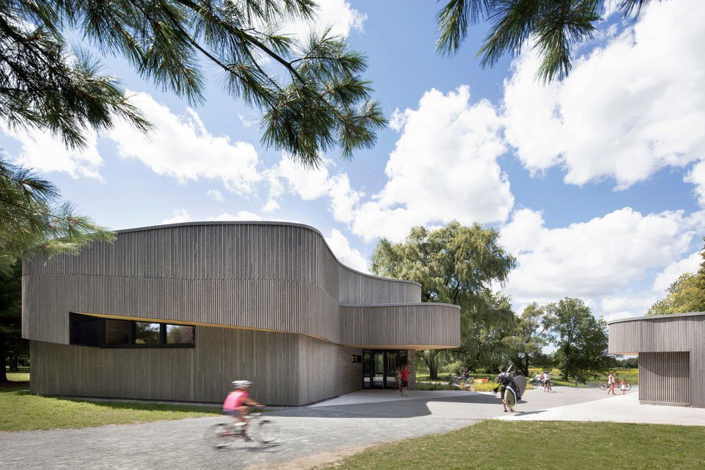 Le projet primé du Centre de découverte et d'accueil, conçu par un studio canadien, est le nouveau point d'accueil du Parc national des Îles-de-Boucherville, qui sert également de forum pour de nombreux parcs nationaux du Québec. Les formes ondulées et le revêtement en bois donnent à cette architecture son caractère organique.