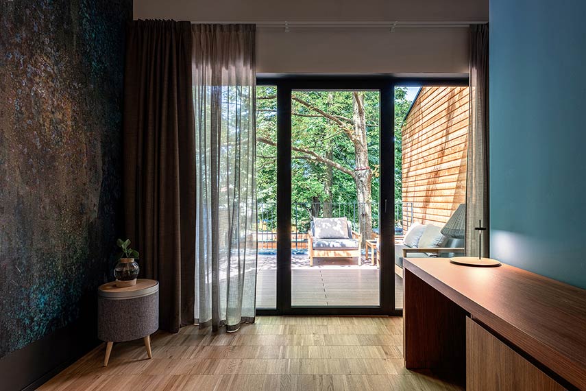 Dans le cadre du Terme Preistoriche Resort & Spa, les Green Lodges incarnent une approche zéro émission de l'hospitalité. Conçus par Studio Apostoli, quatre structures sur pilotis en bois abritent sept suites, reliées par un système surélevé de rampes, de passerelles et de terrasses accessibles. De plus, une villa historiquement préservée représente la huitième et la plus vaste offre de cette entreprise visionnaire. Les structures conçues et les espaces extérieurs sont soutenus par 160 micropieux, préservant les racines des arbres anciens